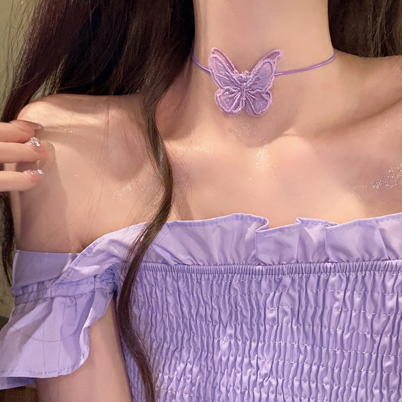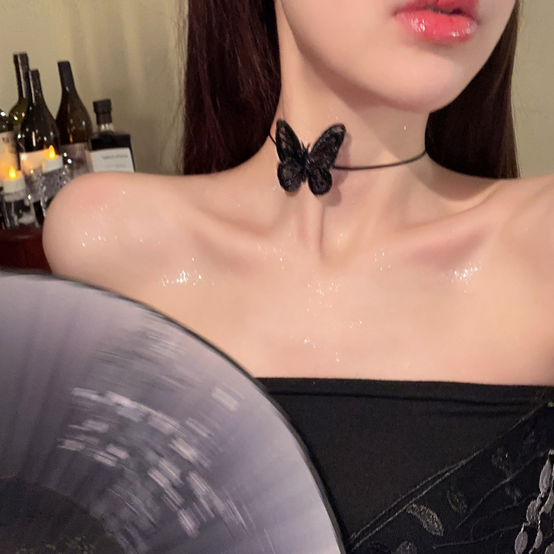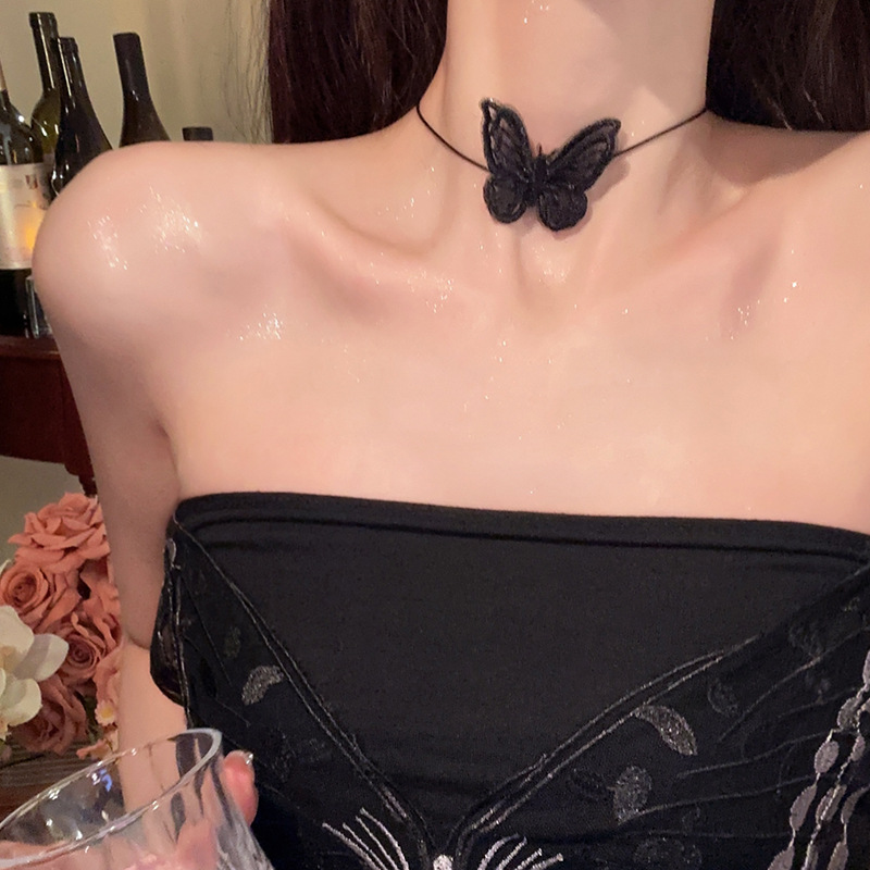 콜드 스타일 3 차원 나비 목걸이 틈새 디자인 초커 목걸이 여성용 목 벨트 트렌디 인터넷 기념 슈퍼 요정 쇄골 체인