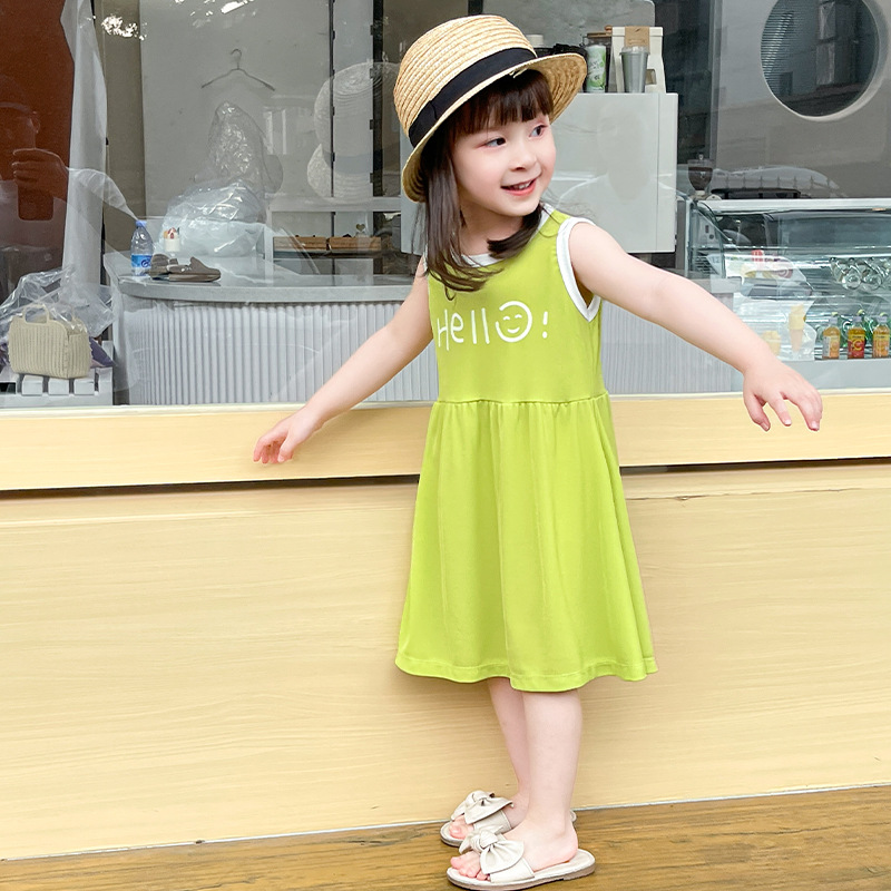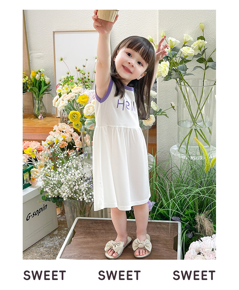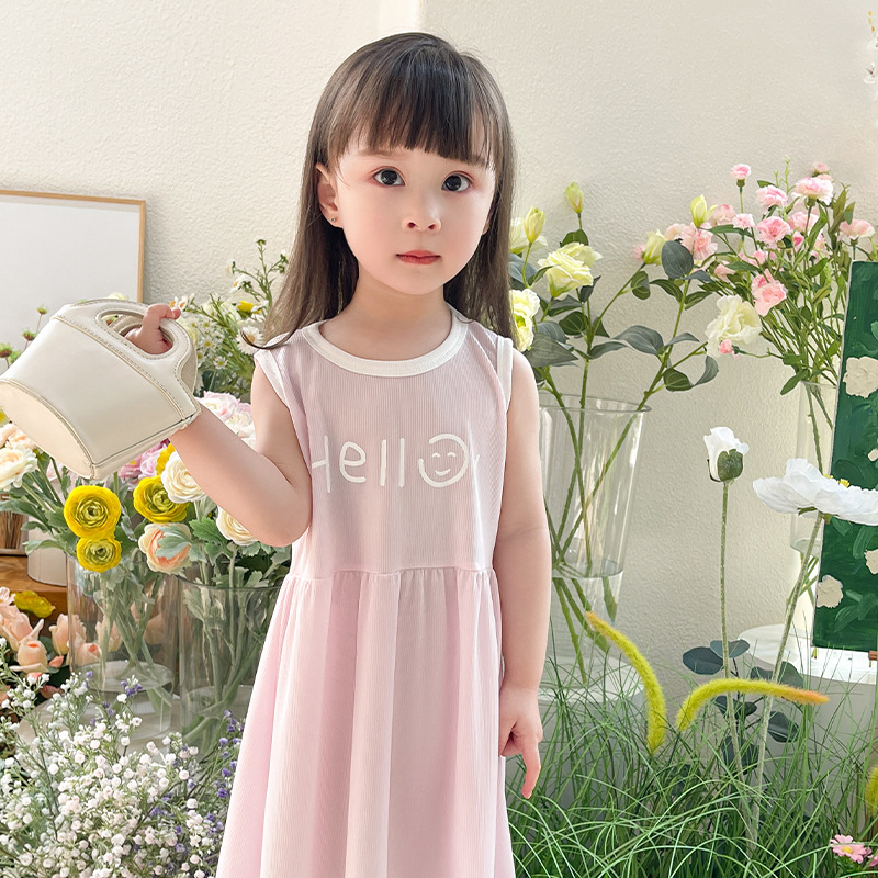 어린이 원피스 나이트 드레스 여름 민소매 얇은 여성의 보물 소녀 비치 원피스 새로운 아이스 실크 소녀 조끼 원피스스토어 가기