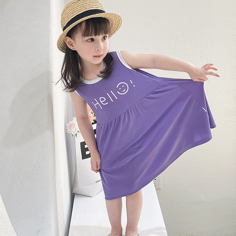 어린이 원피스 나이트 드레스 여름 민소매 얇은 여성의 보물 소녀 비치 원피스 새로운 아이스 실크 소녀 조끼 원피스