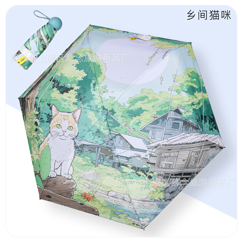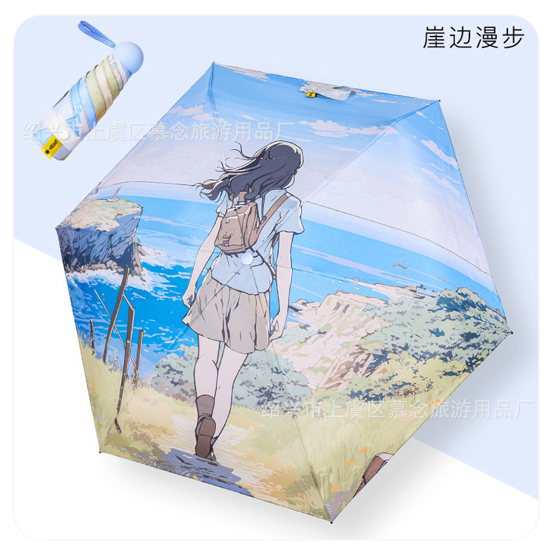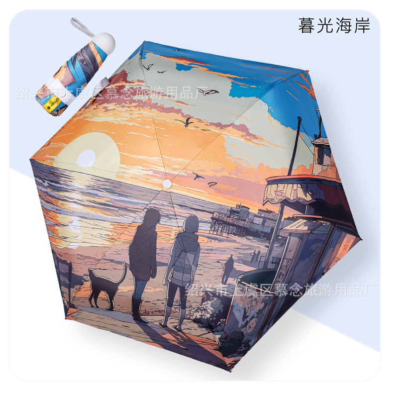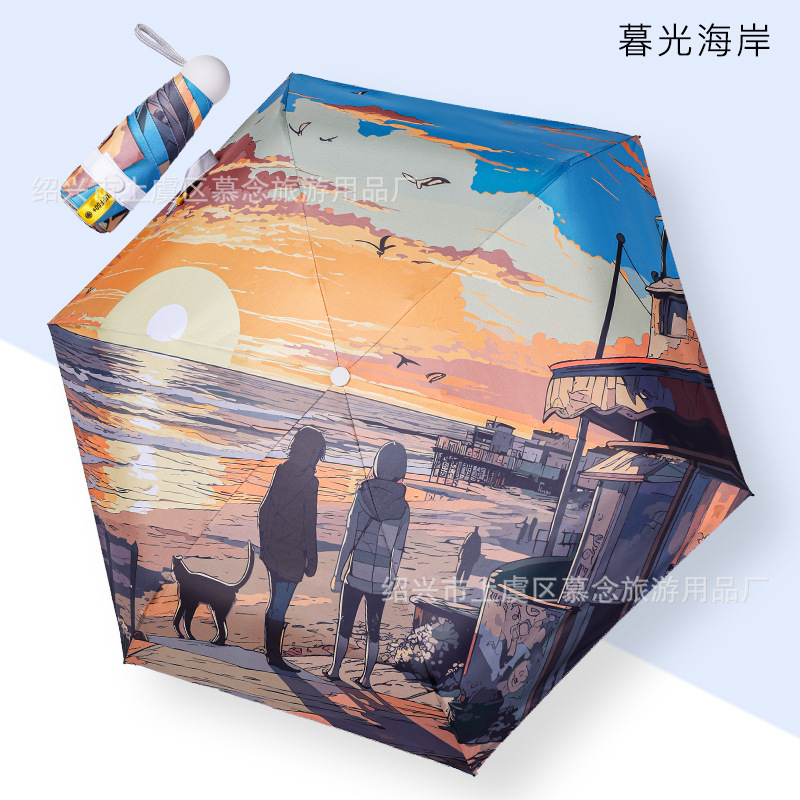미니 우산 유화 인쇄 썬 스크린 우산 50% 접는 블랙 접착제 포켓 캡슐 우산 휴대용 이중 사용 햇빛 우산스토어 가기