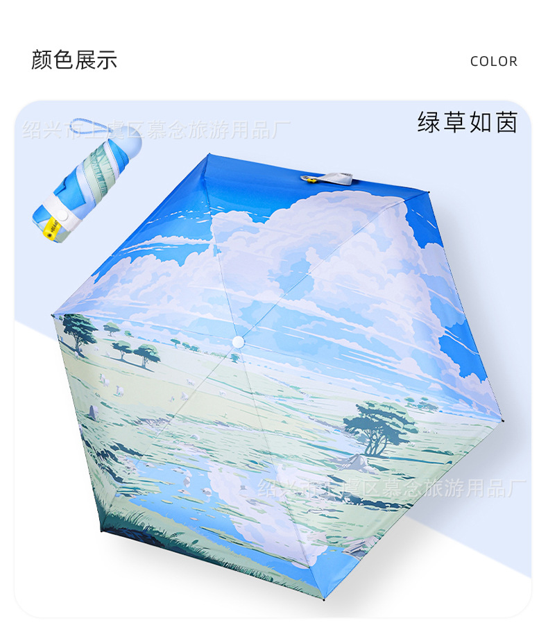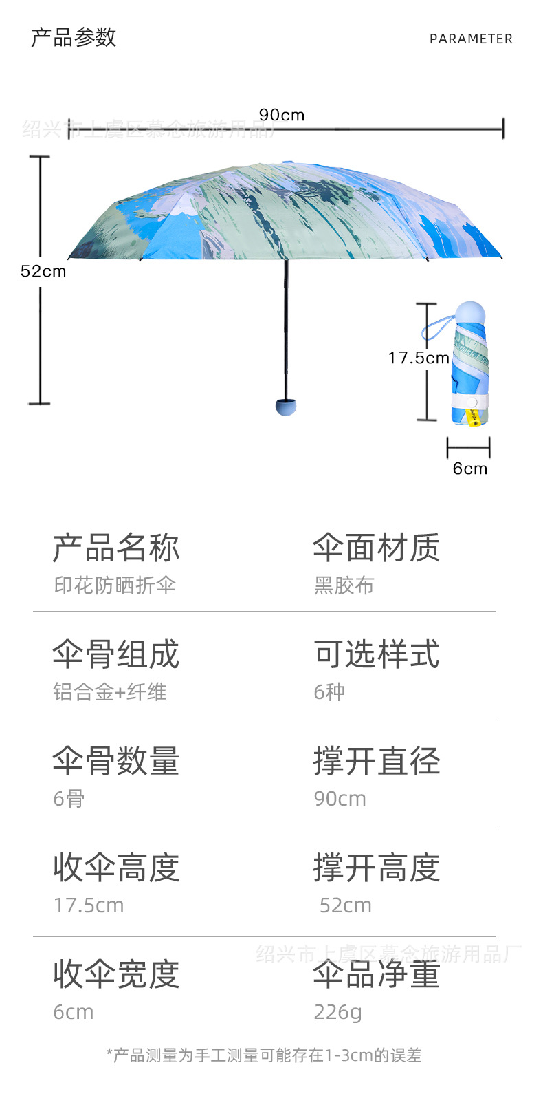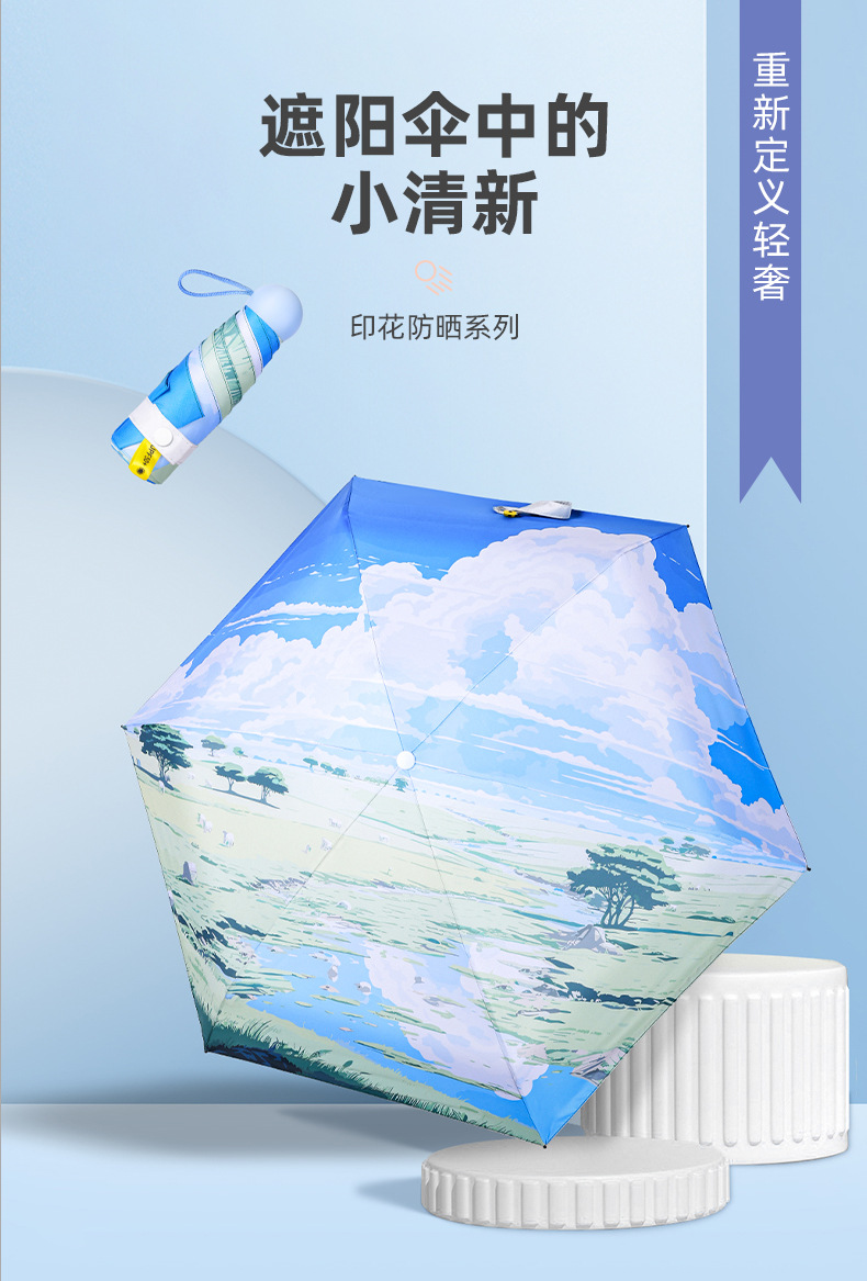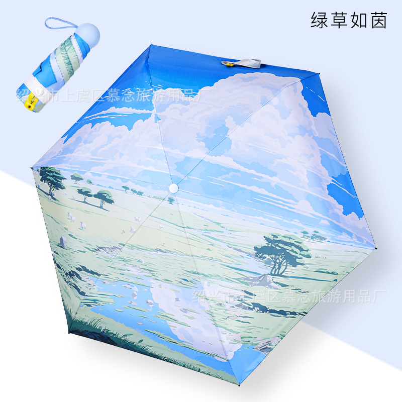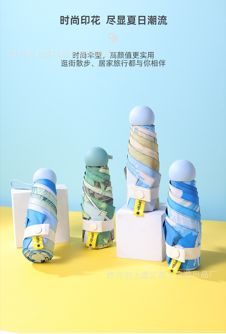 미니 우산 유화 인쇄 썬 스크린 우산 50% 접는 블랙 접착제 포켓 캡슐 우산 휴대용 이중 사용 햇빛 우산