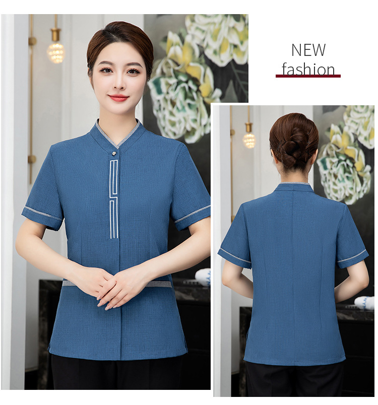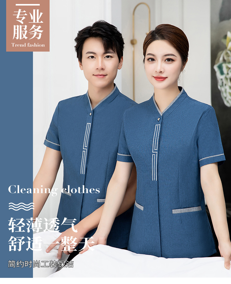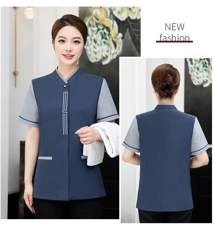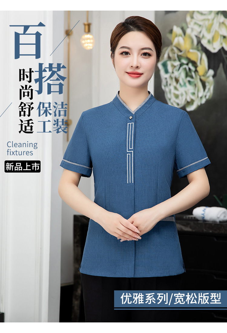 객실 청소 작업 옷 짧은 소매 여성 재산 가사 판매 사무실 쇼핑몰 청소 아줌마 중국 스타일 청소 옷 여름 옷스토어 가기