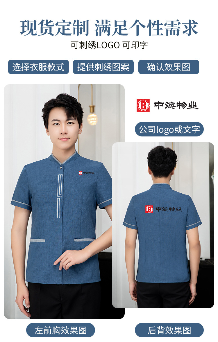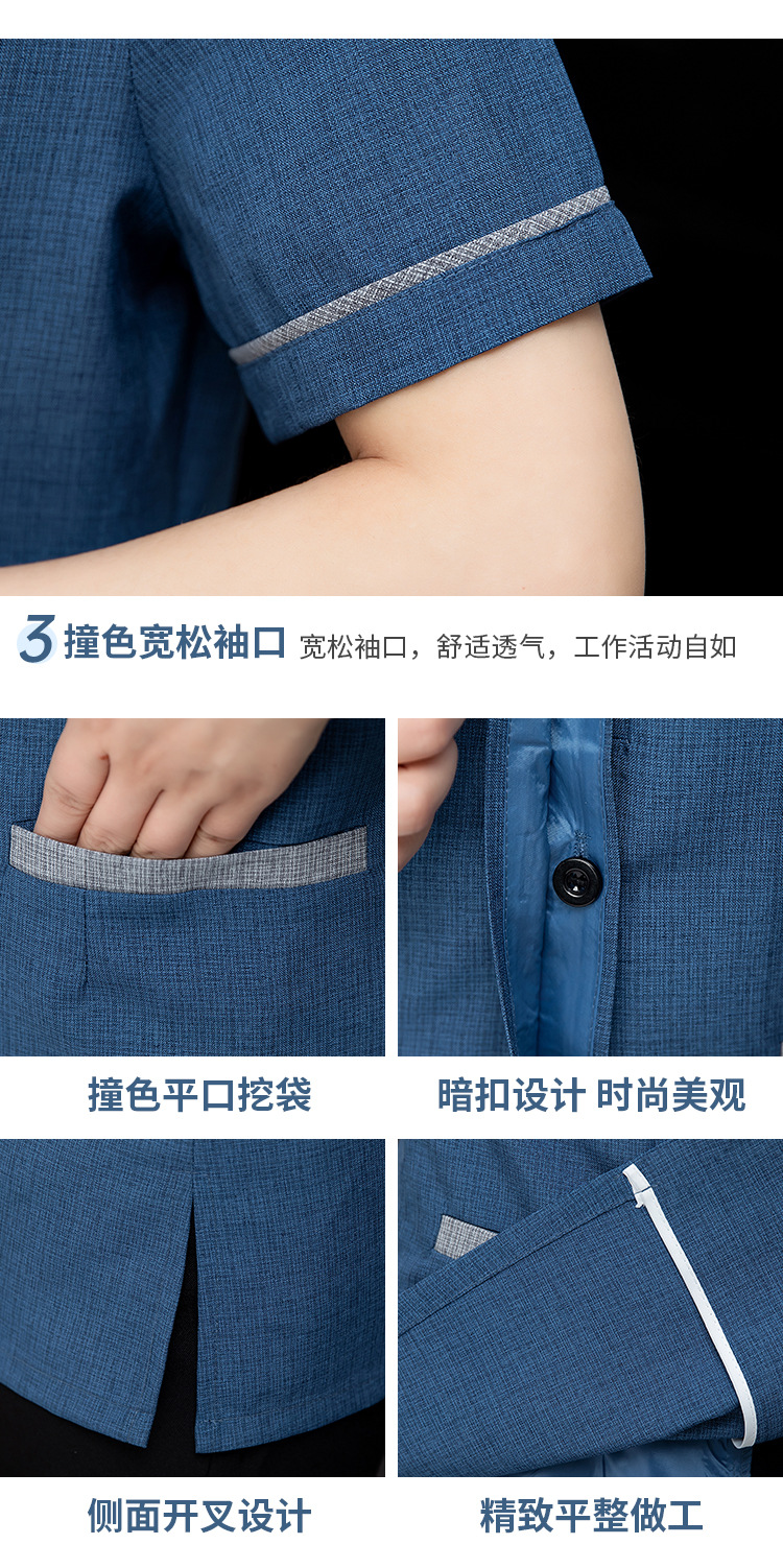 객실 청소 작업 옷 짧은 소매 여성 재산 가사 판매 사무실 쇼핑몰 청소 아줌마 중국 스타일 청소 옷 여름 옷