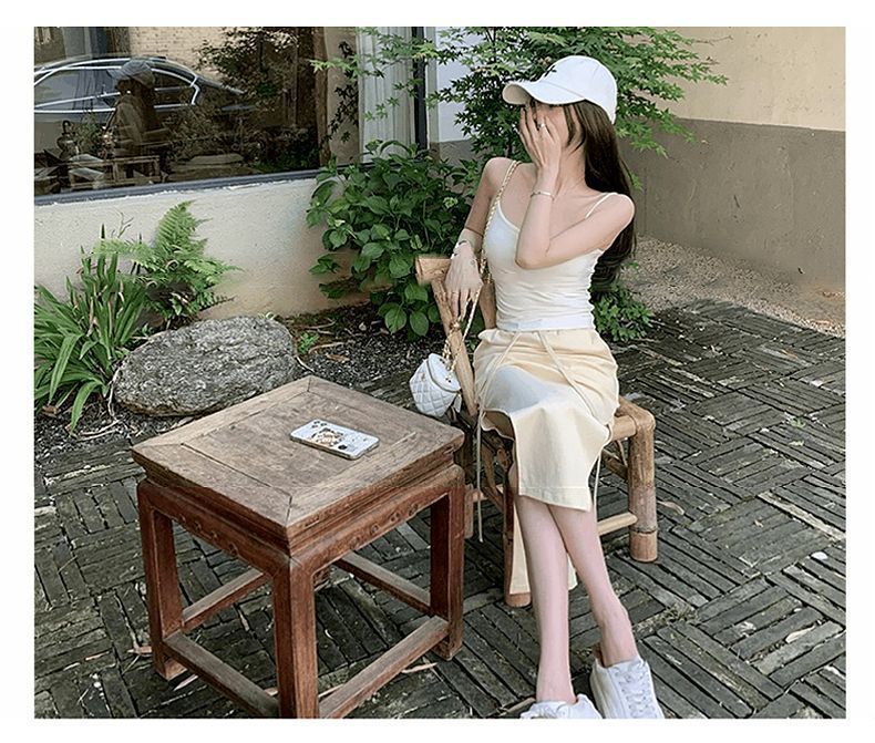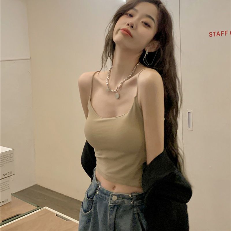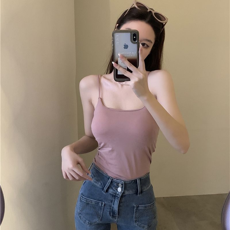 작은 슬링 여성의 순수한 욕망 향신료 소녀 가슴 패드 흰색 조끼 외부 착용 내부 매칭 세트 기본 탑 여름스토어 가기