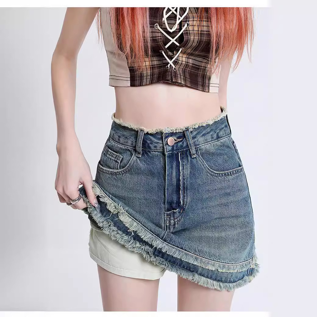 데님 스커트 여자 2024 새로운 레트로 원시 데님 스커트 여자 여름 안티 라이트 핫 걸 힙합 스커트 트렌디