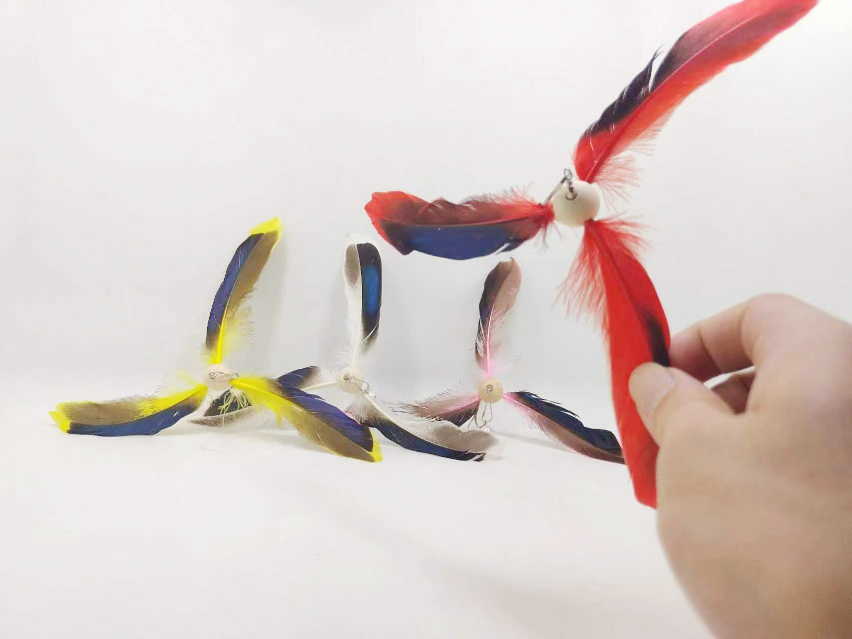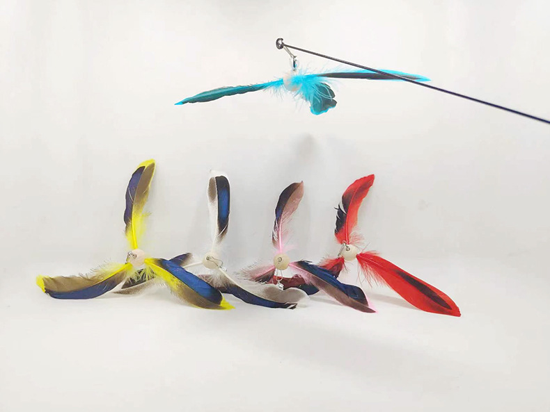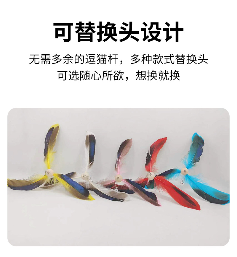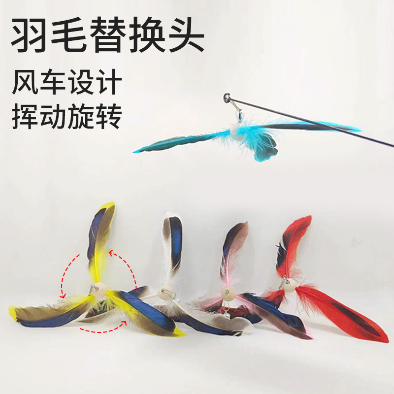 공장 직송 깃털 고양이 장난감 막대 교체용 헤드벨 포함 회전 풍차 고양이 장난감 고양이 용품스토어 가기