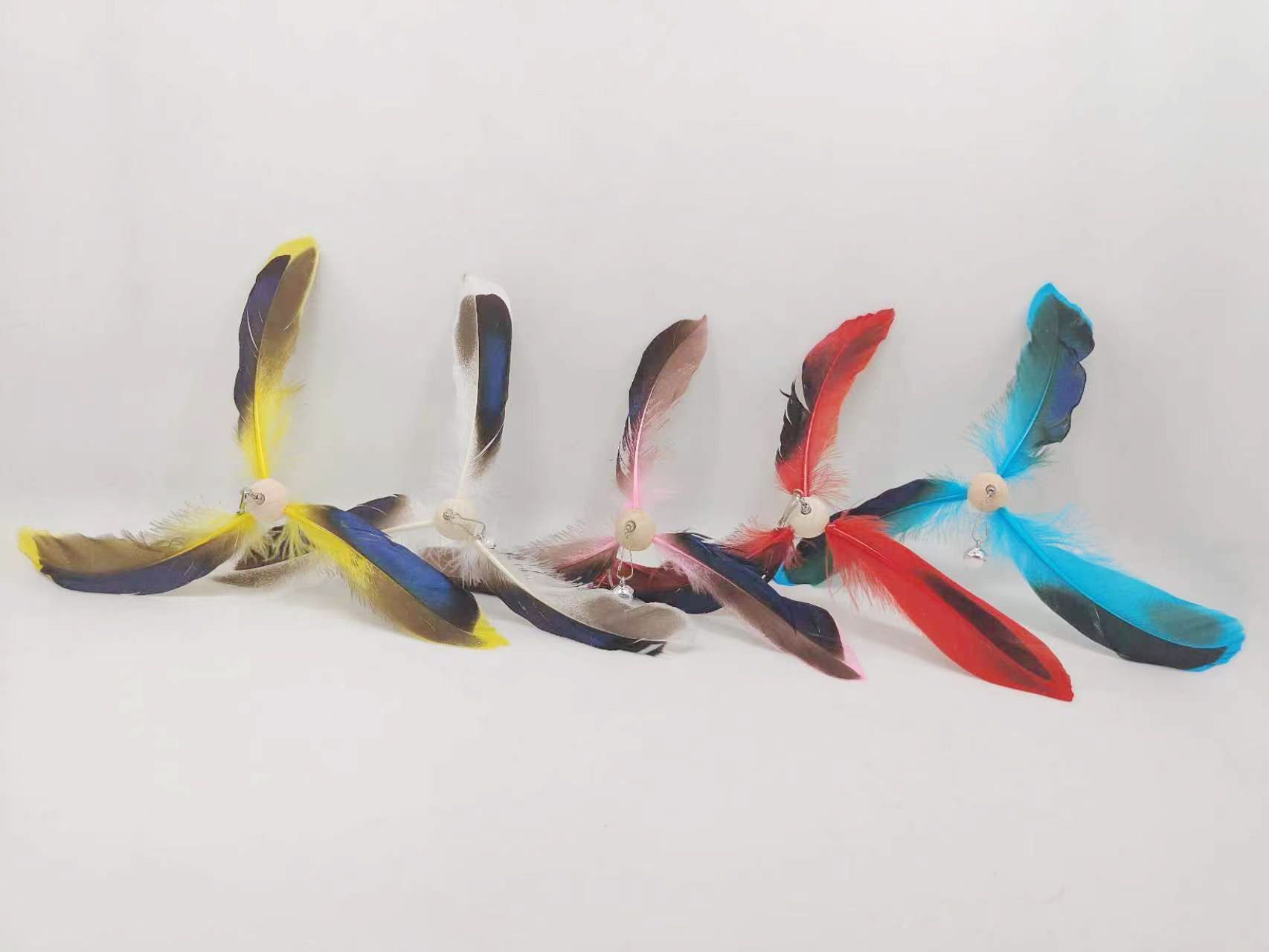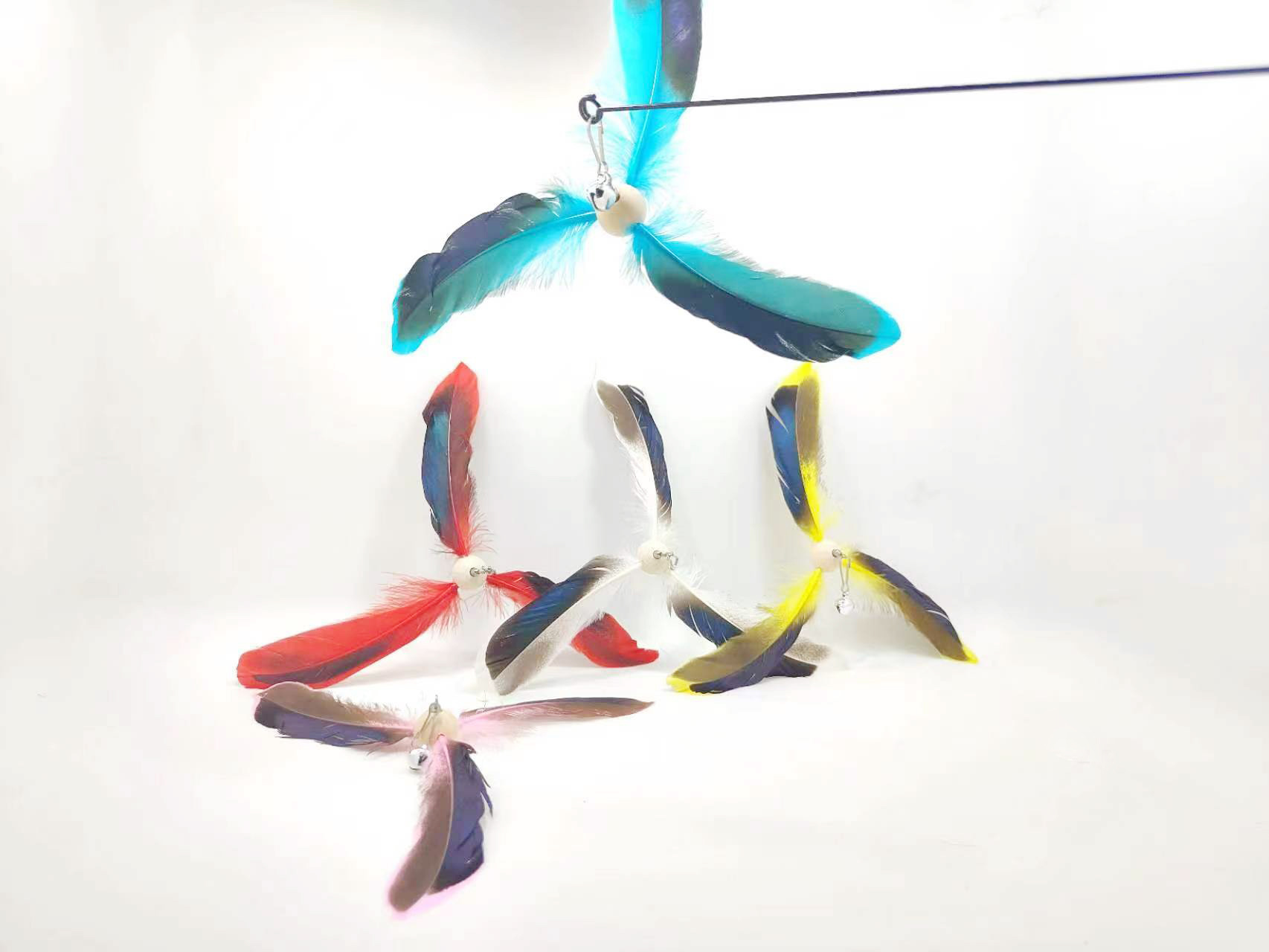 공장 직송 깃털 고양이 장난감 막대 교체용 헤드벨 포함 회전 풍차 고양이 장난감 고양이 용품