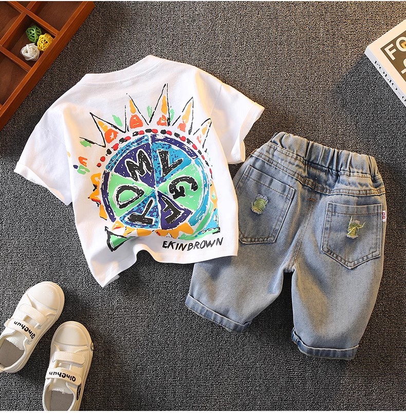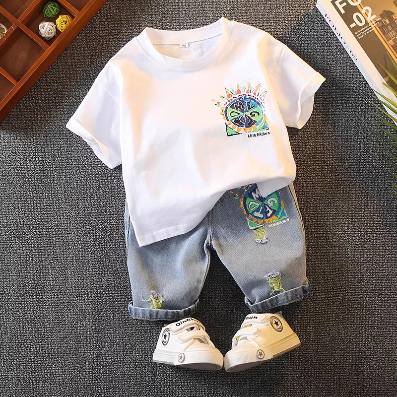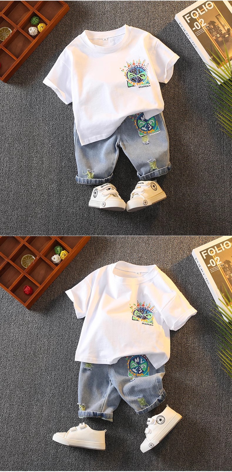 남자 여름 세트 2024 새로운 어린이 잘 생긴 여름 유행 소년 인터넷 인기있는 유행 스포츠 반팔 투피스 세트스토어 가기