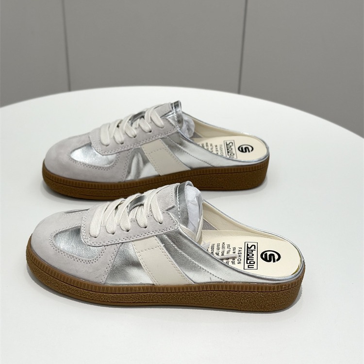 2024 여름 신상 소가죽 반슬리퍼 여성용 외출용 트렌디 슬립온 무뒤꿈치 데일리 슈즈 통기성 플랫스토어 가기
