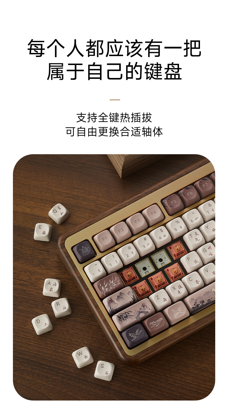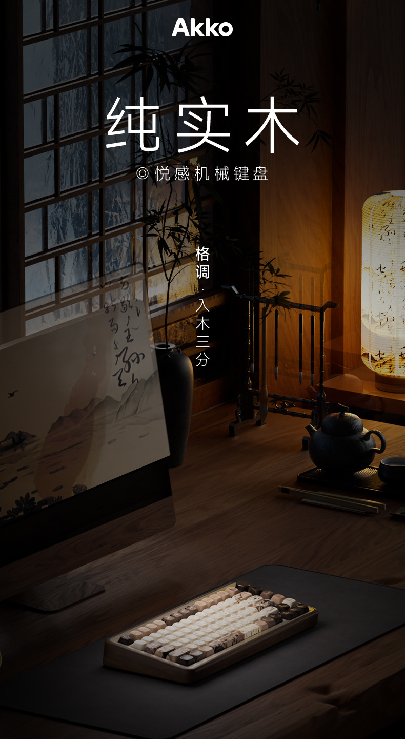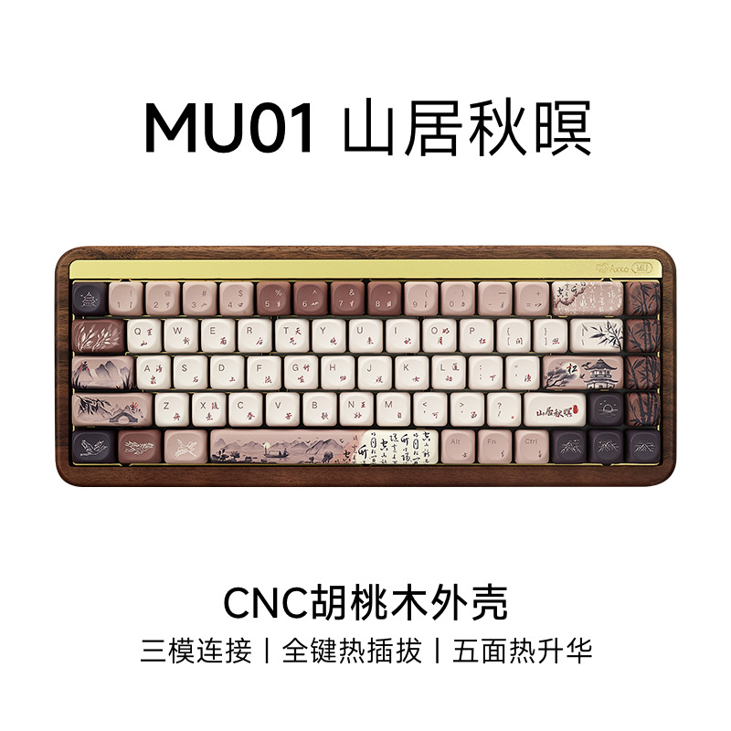 Akko mu01 검은 호두 나무 tuo 3 모드 기계 키보드 무선 블루투스 산 생활 가을 저녁 맞춤형 게임스토어 가기