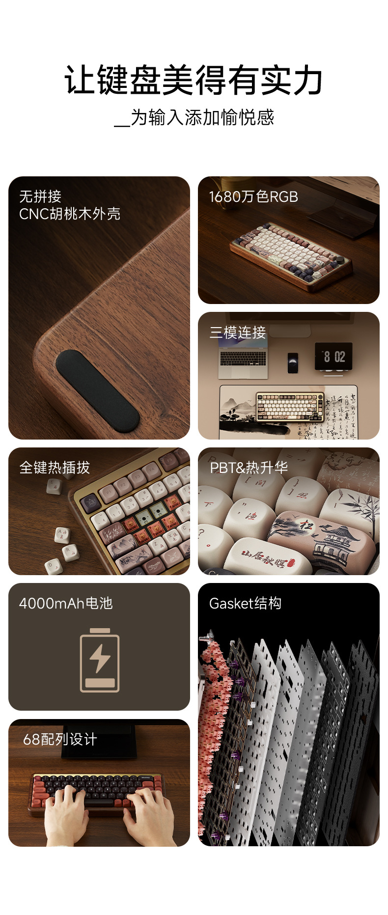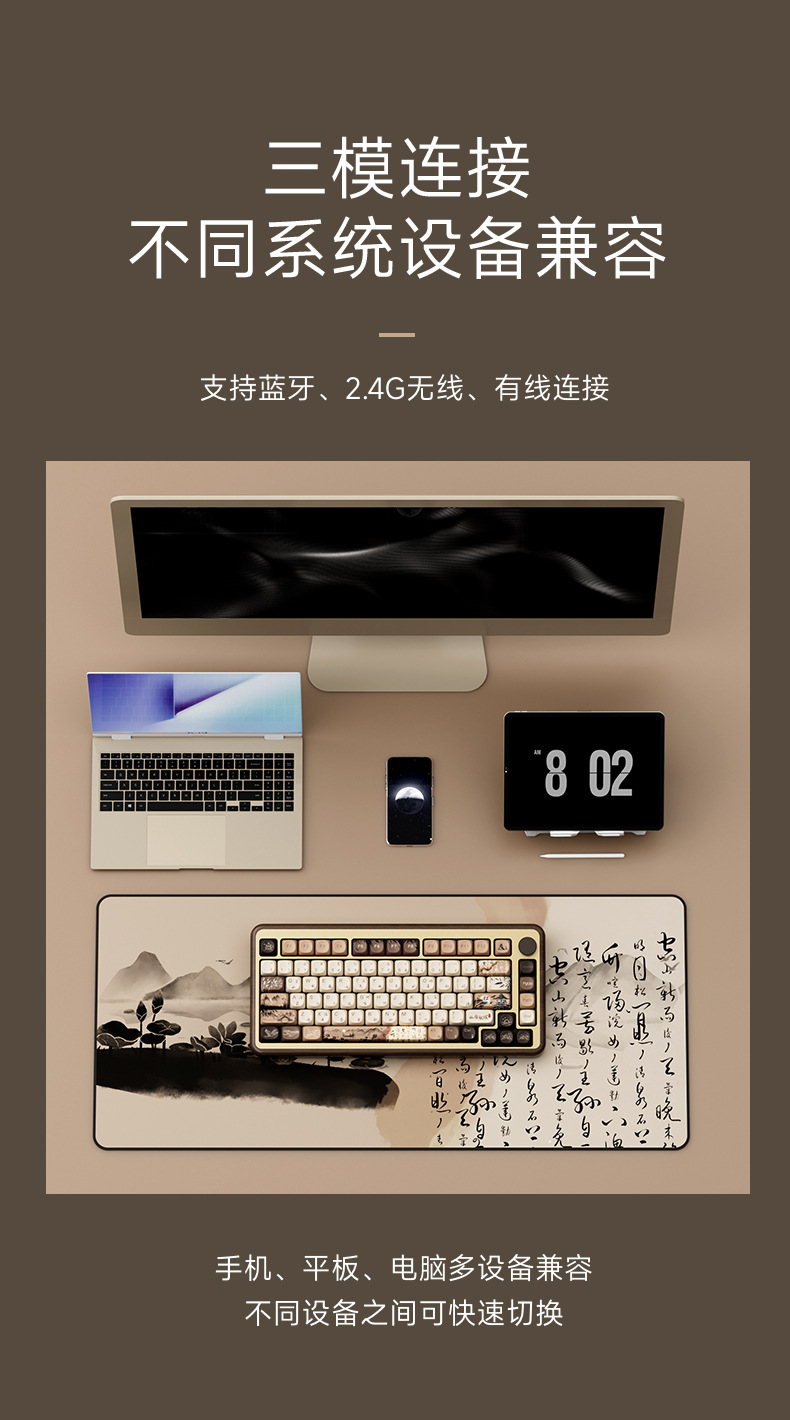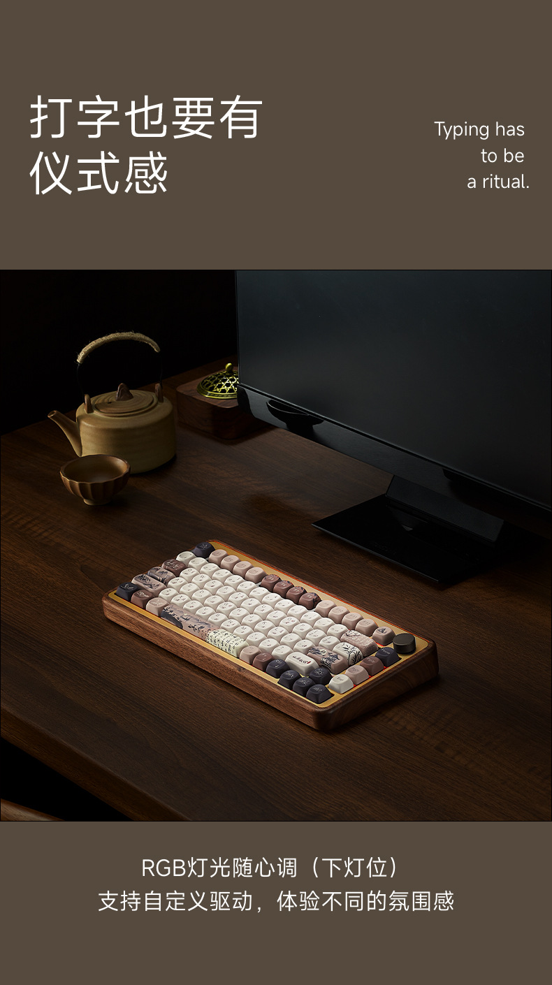 Akko mu01 검은 호두 나무 tuo 3 모드 기계 키보드 무선 블루투스 산 생활 가을 저녁 맞춤형 게임스토어 가기