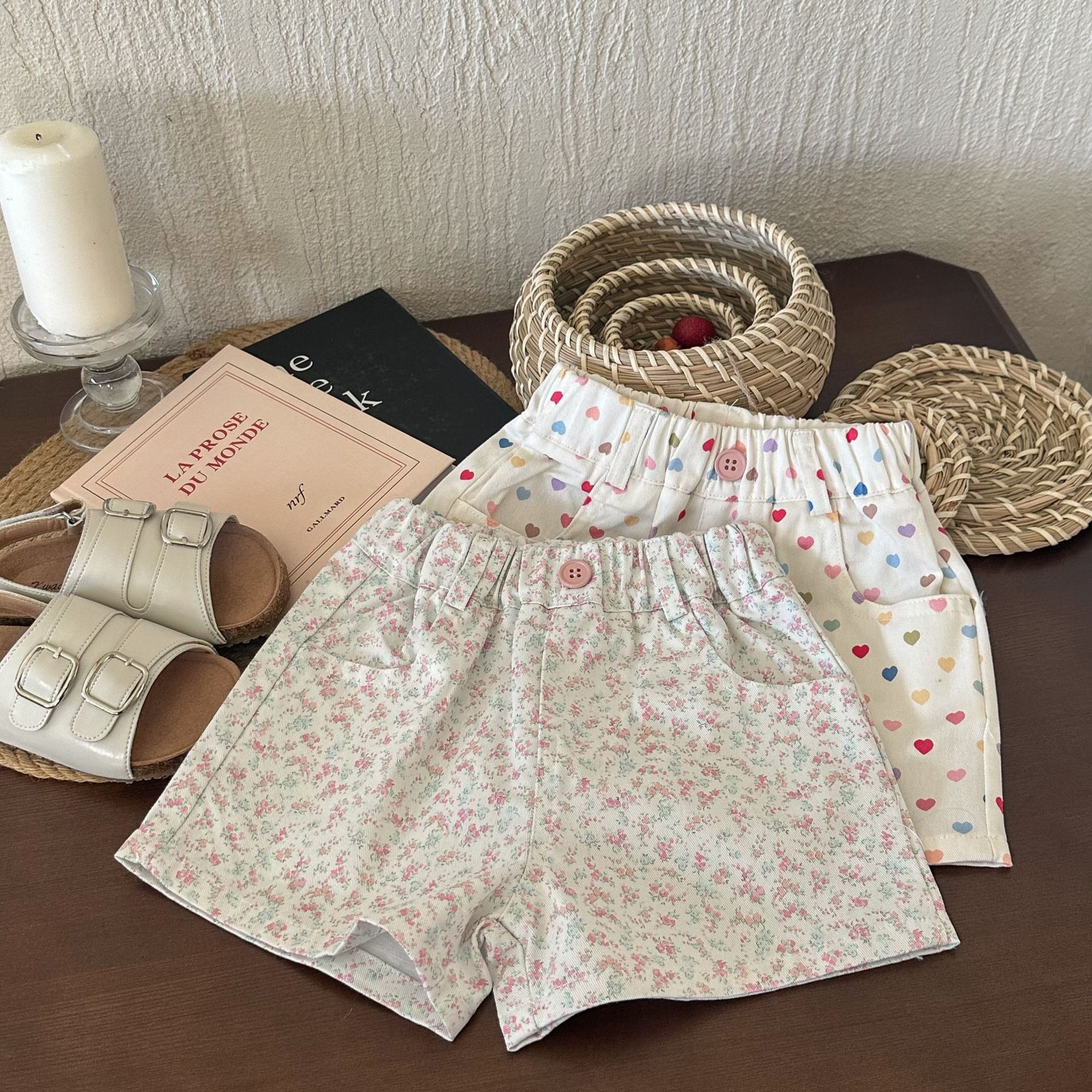 여자 인쇄 반바지 여름 새로운 어린이 한국어 버전 ins 사랑 면화 바지 아기 소녀 꽃 바지 유행스토어 가기