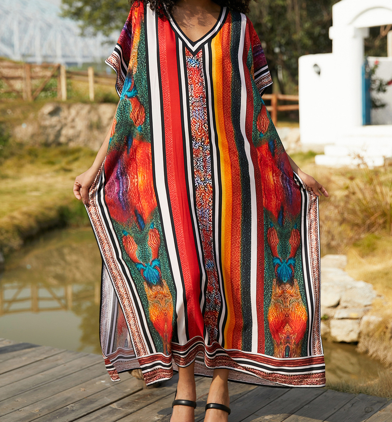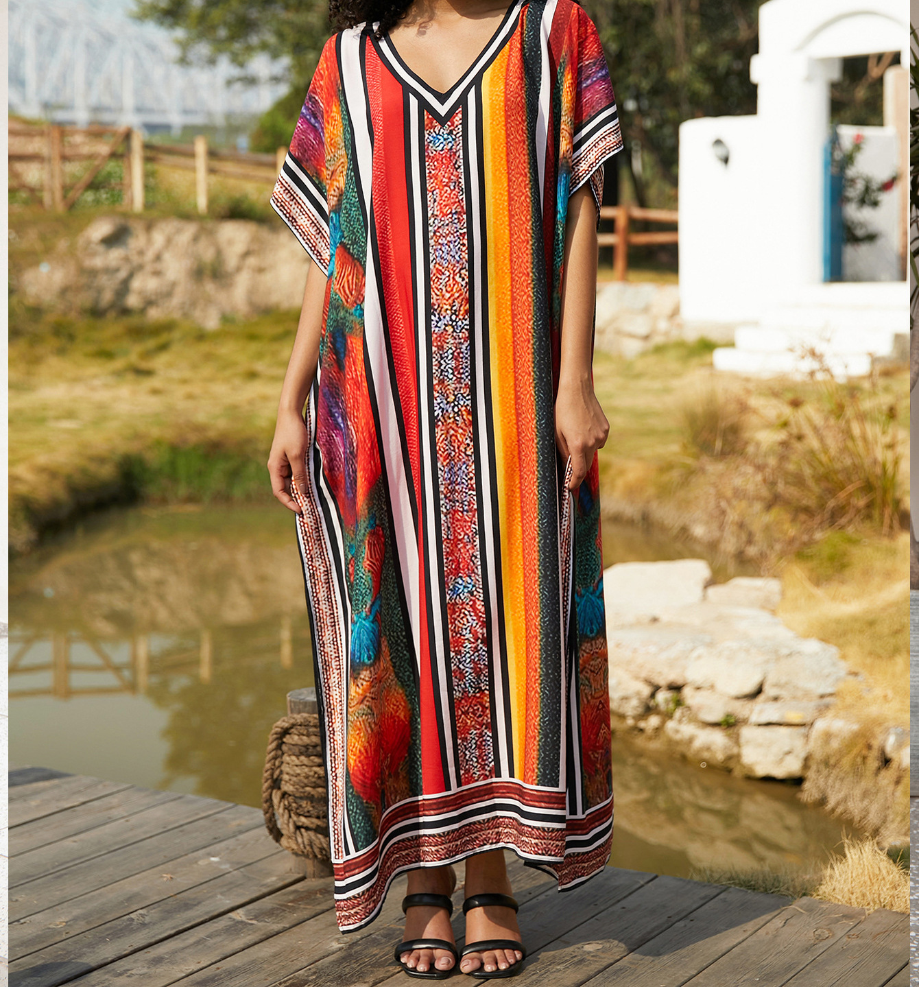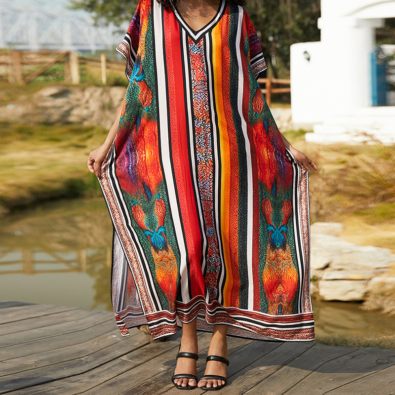해변 블라우스 면화 위치 인쇄 된 휴가 도로 국경 아마존 원피스 느슨한 대형 여름 휴가