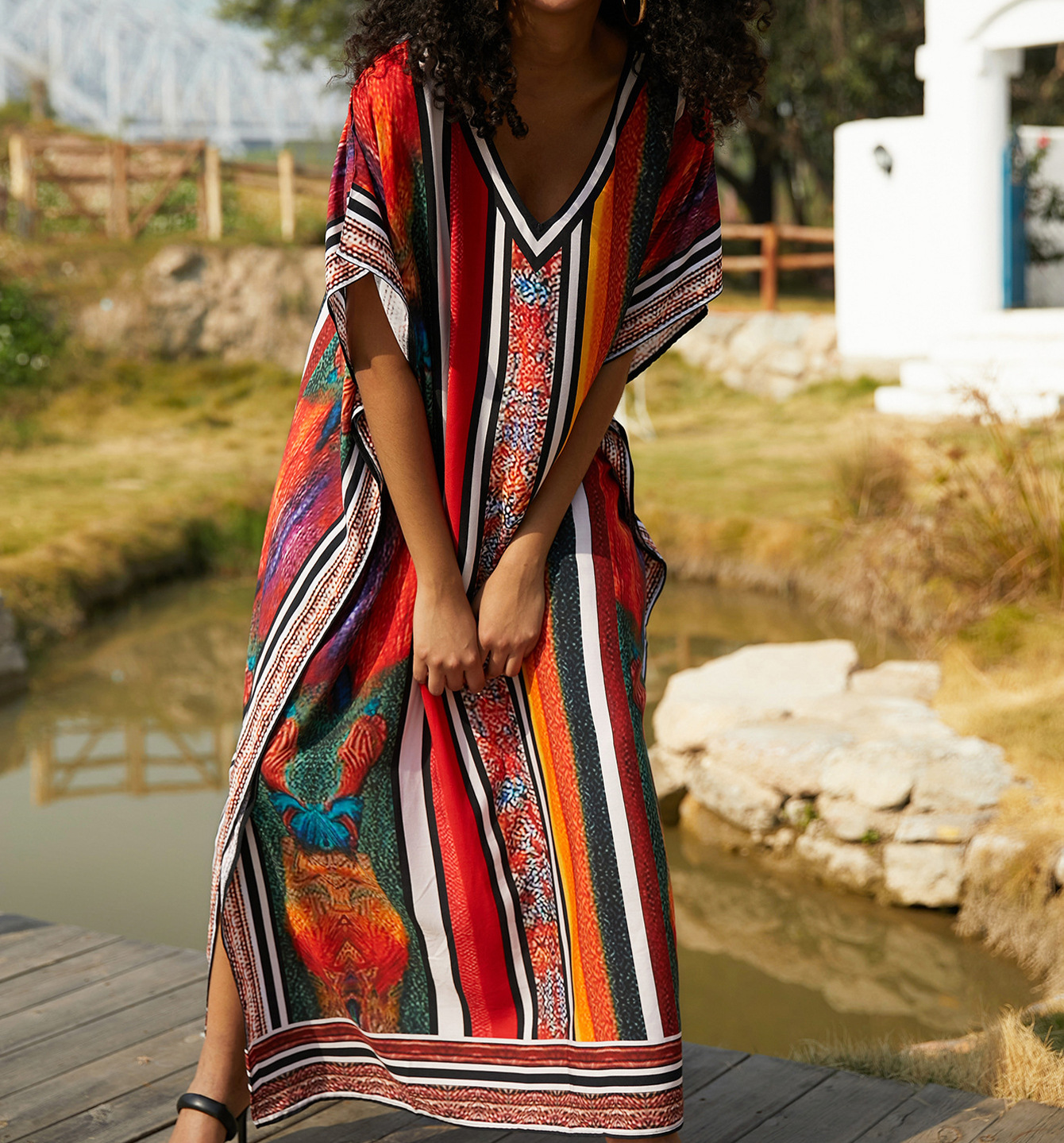 해변 블라우스 면화 위치 인쇄 된 휴가 도로 국경 아마존 원피스 느슨한 대형 여름 휴가스토어 가기