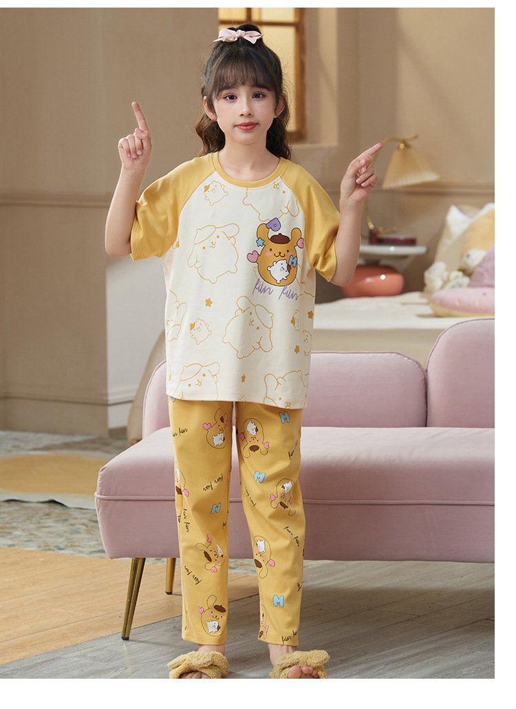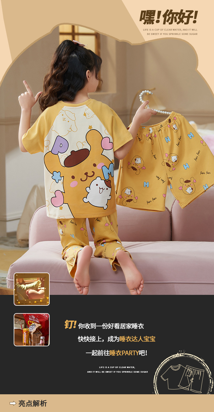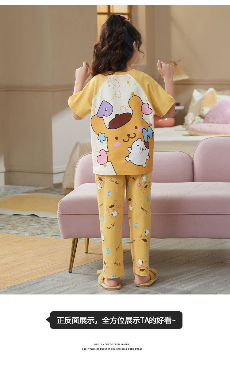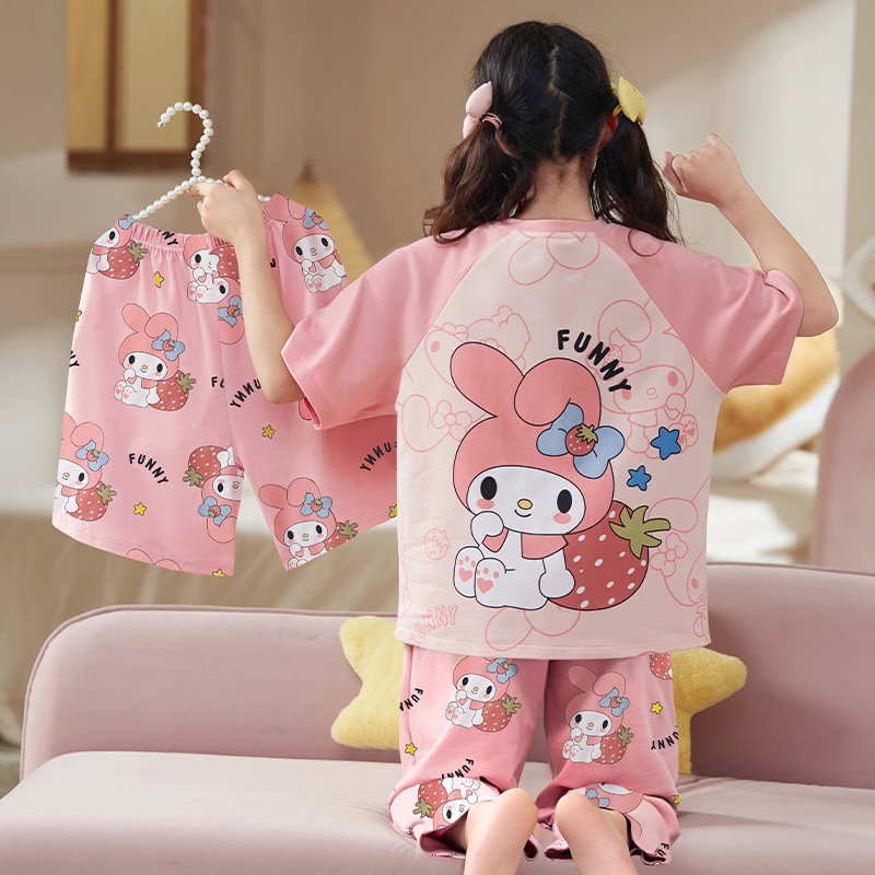 어린이 소녀 여름 잠옷 3 종 세트 만화 소녀 얇은 반팔 바지 반바지 큰 어린이 봄과 가을 가정 옷