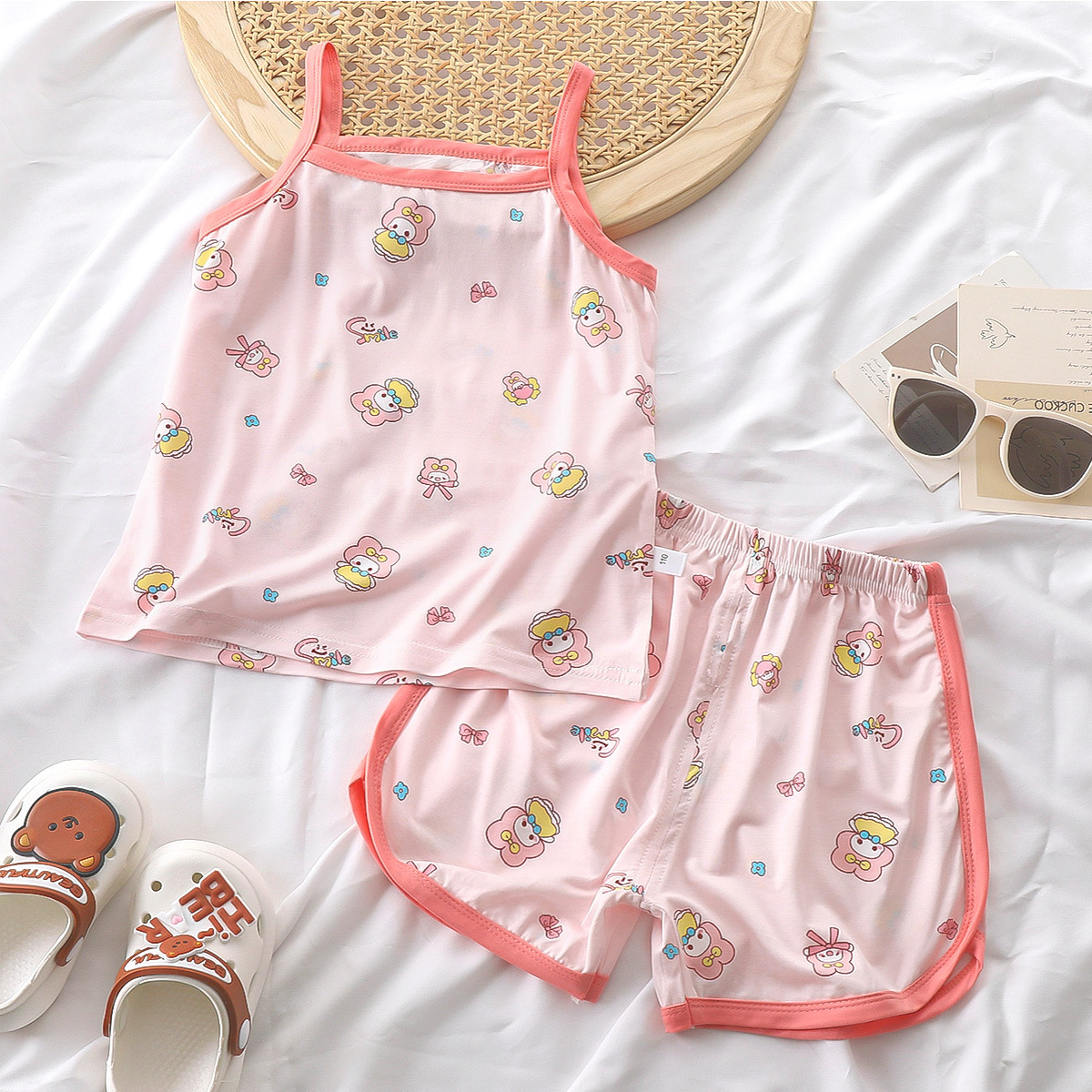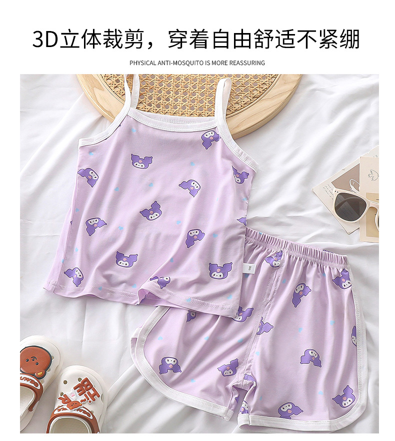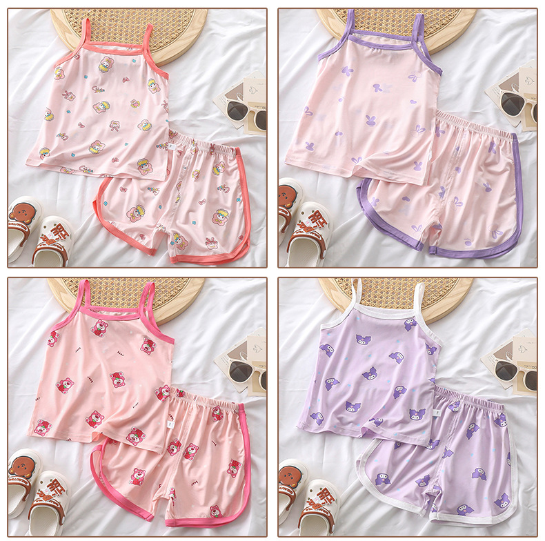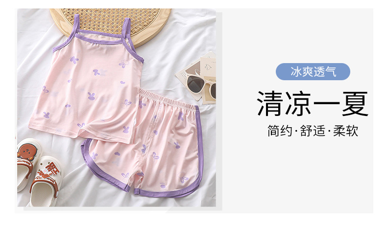 여름 소녀 서스펜더 슈트 2025 새로운 텐셀 어린이 얇은 잠옷 아기 가정 의류 중소 어린이 반바지