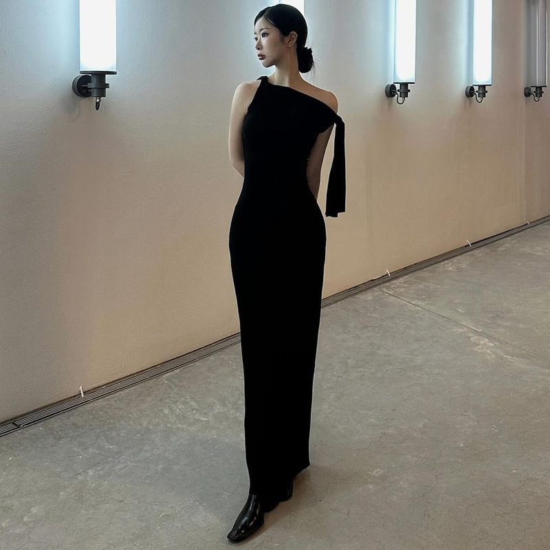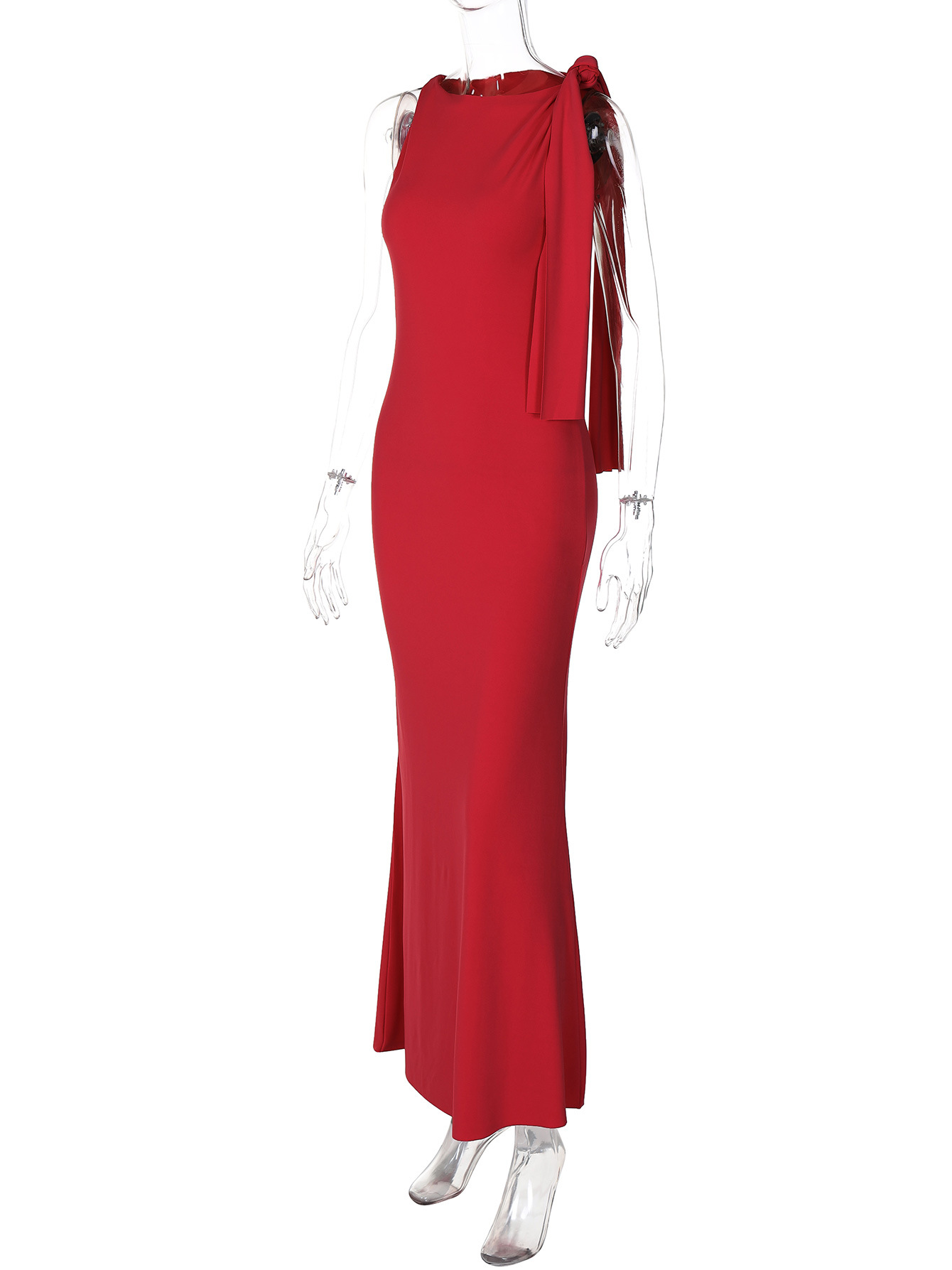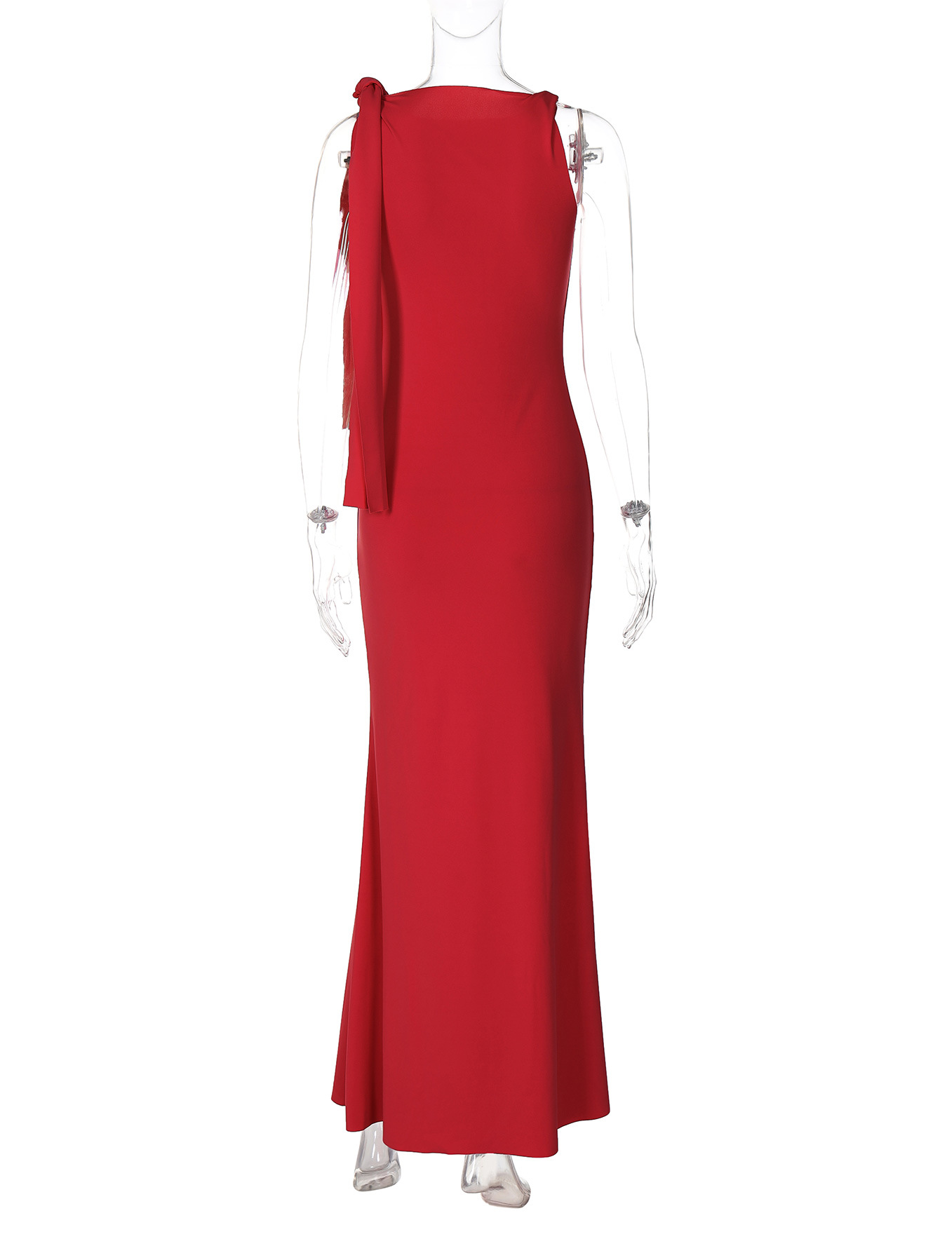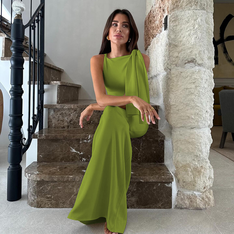 아마존 핫 여성 2025 여름 새로운 패션 기질 어깨 리본 단색 원피스 대외 무역 도매