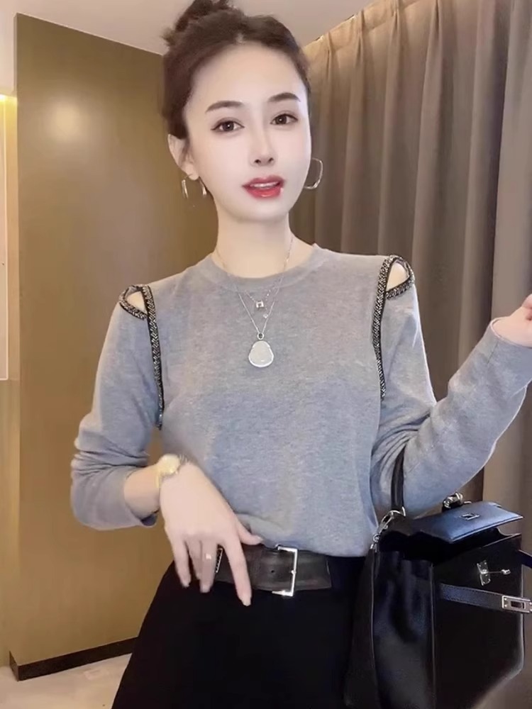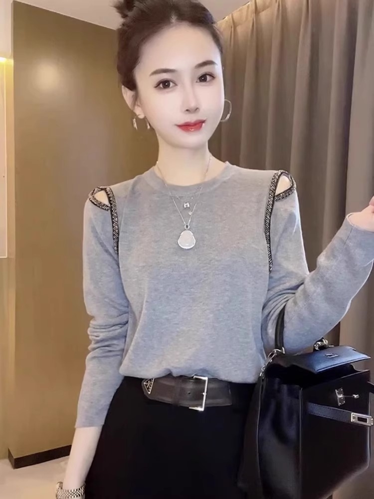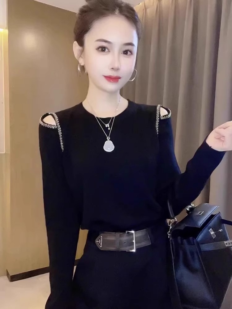 외국 스타일의 바닥 스웨터 여성의 가을과 겨울 2024 새로운 폭발 패션 오프 숄더 슬리밍 게으른 스타일 올해의 인기 탑