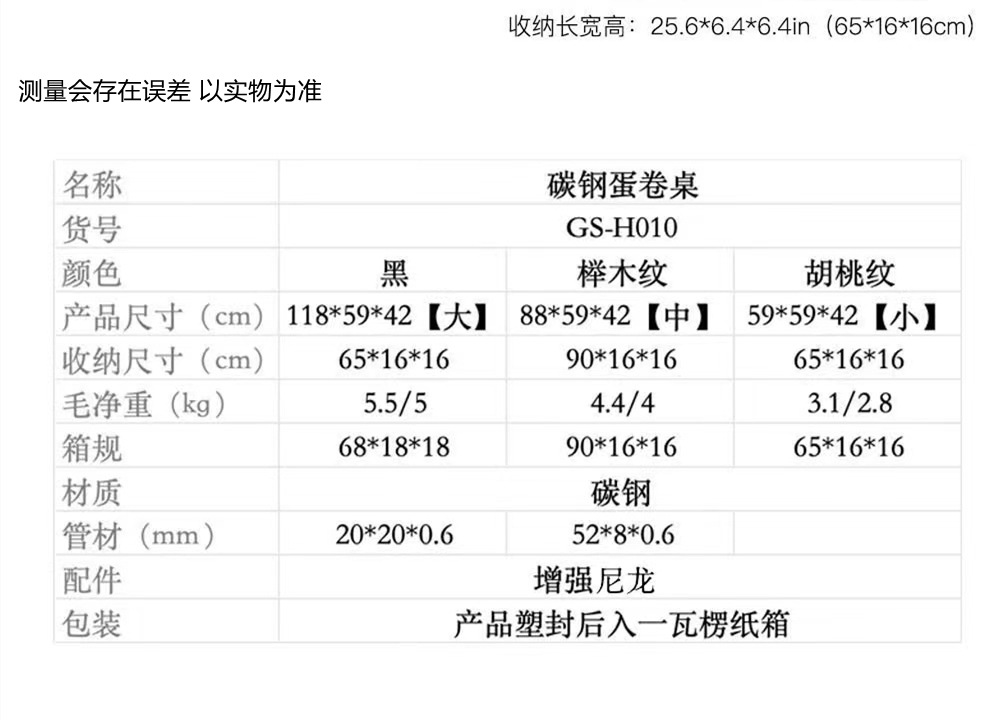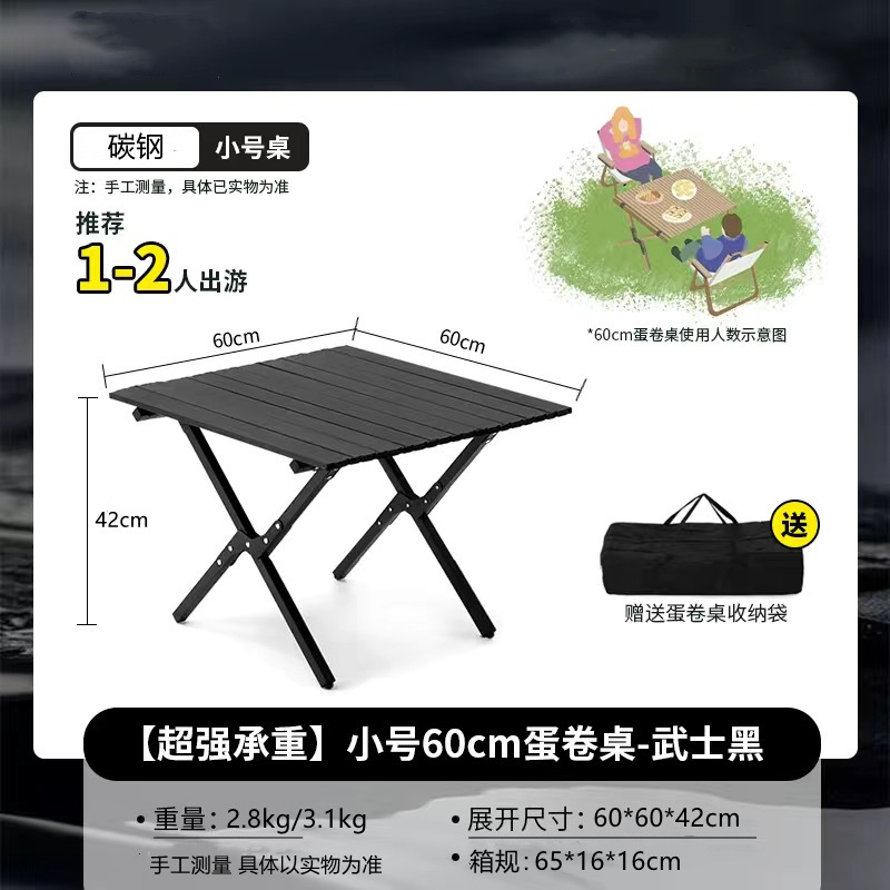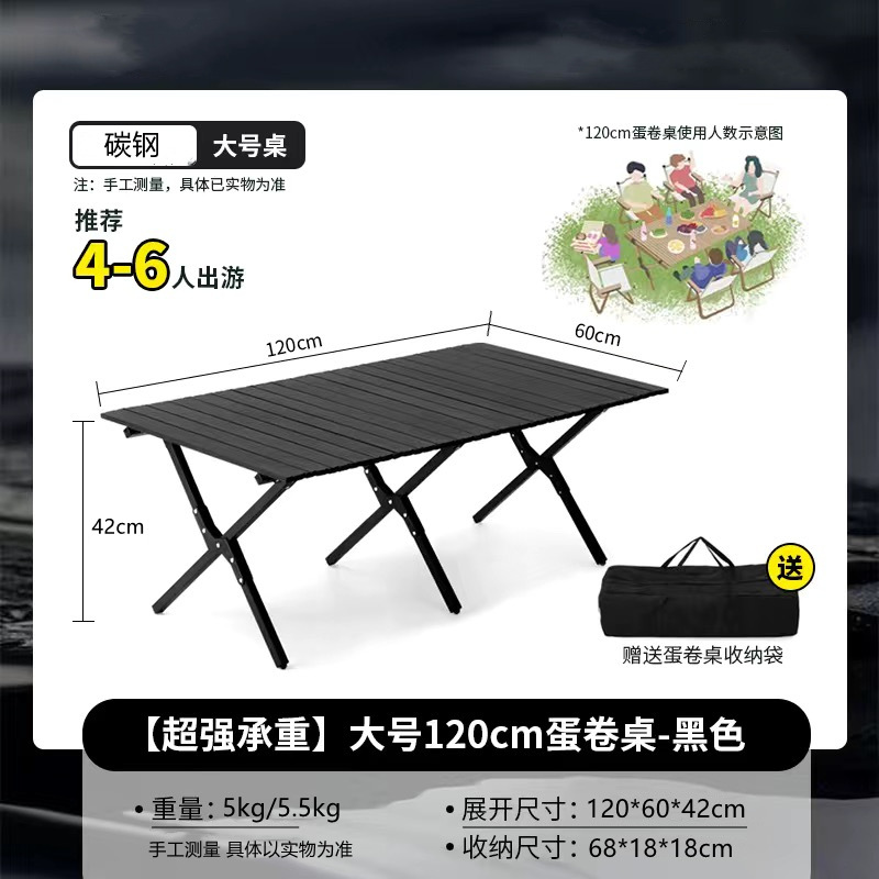 야외 캠핑 계란 롤 테이블 탄소 강철 접이식 테이블 휴대용 야외 안뜰 정원 야외 필드 식탁 및 의자 발코니 용품