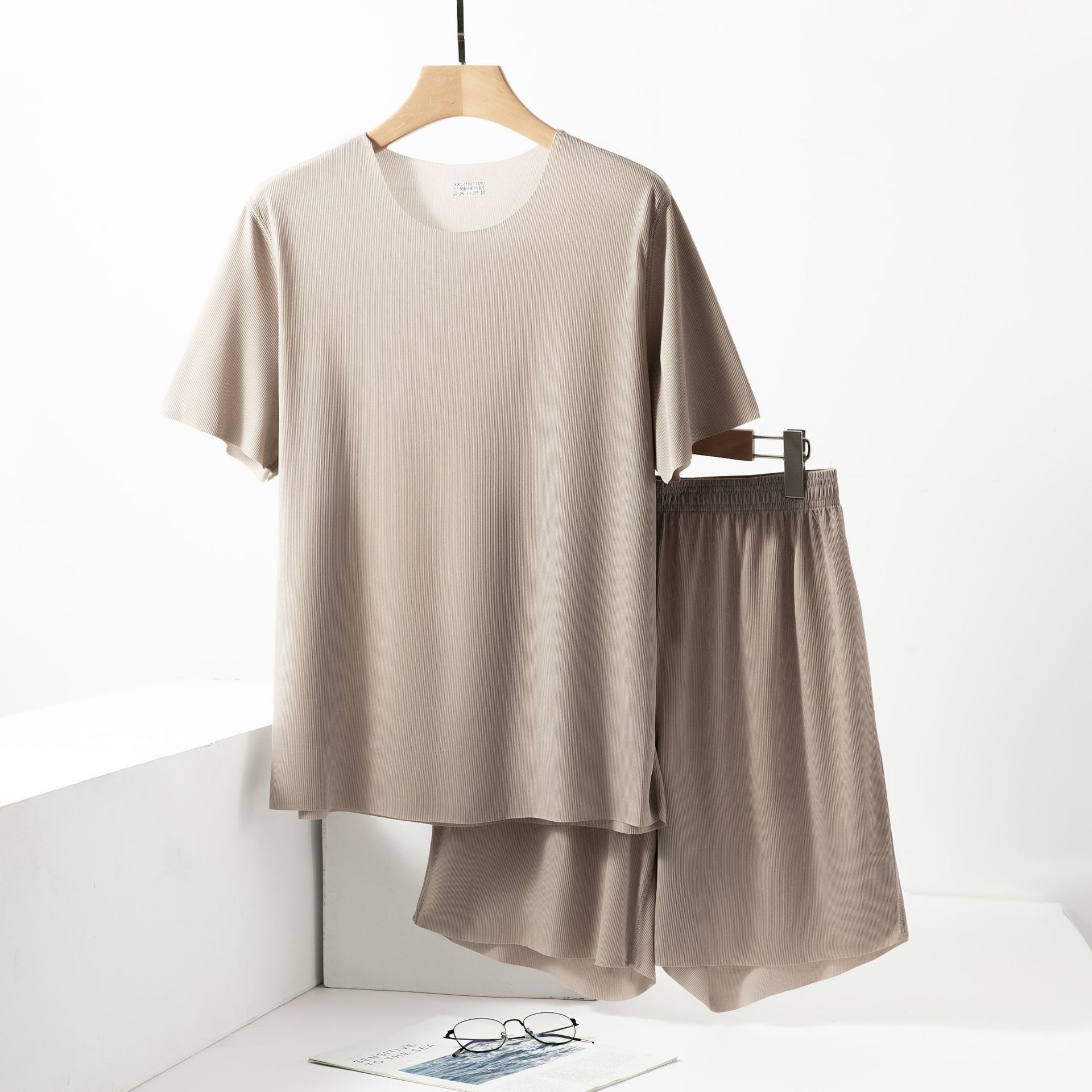 아이스 실크 커플 파자마 여성 여름 2024 느슨한 대형 신속 건조 홈 의류 의류 남성용 반바지 세트스토어 가기