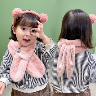 부모와 자녀용 겨울 만화 흰곰 플러시 스카프, 따뜻하고 두꺼운 소녀용 다용도 어린이 겨울 보온 스카프
