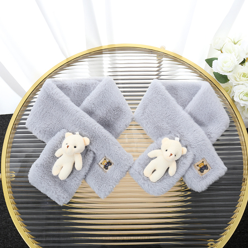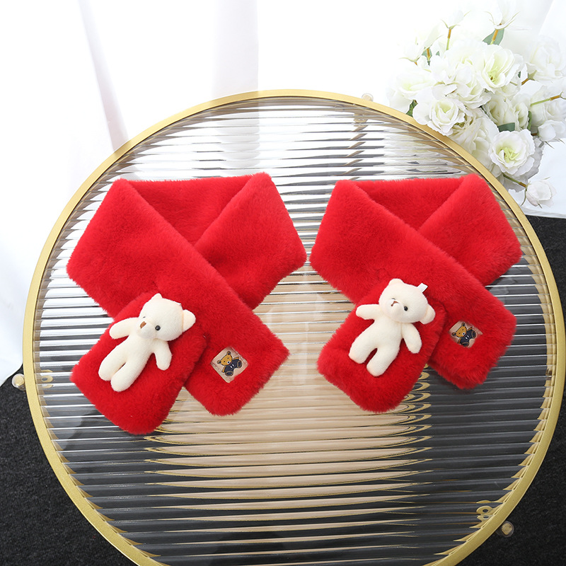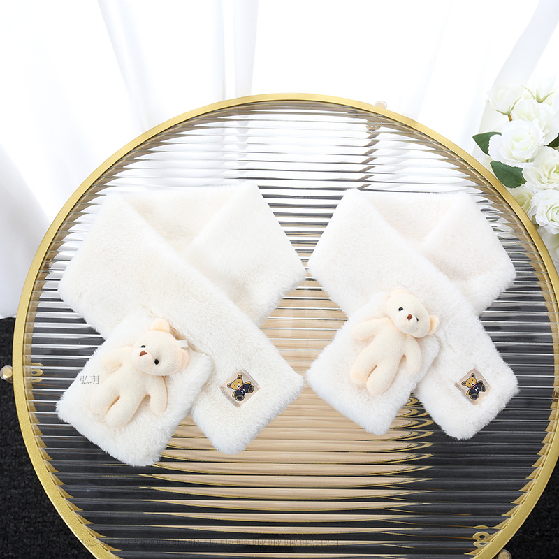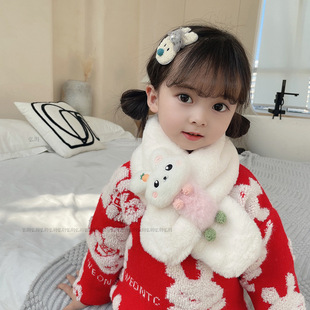 부모와 자녀용 겨울 만화 흰곰 플러시 스카프, 따뜻하고 두꺼운 소녀용 다용도 어린이 겨울 보온 스카프스토어 가기