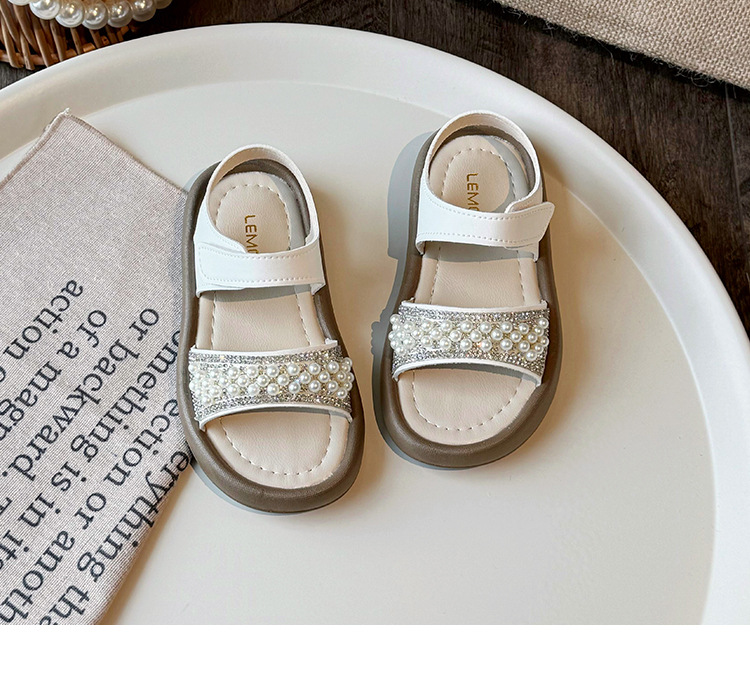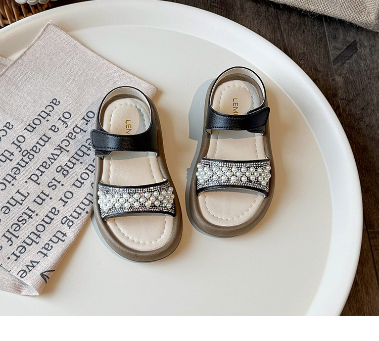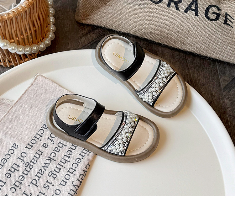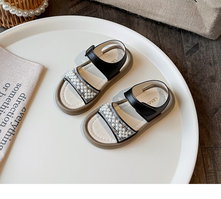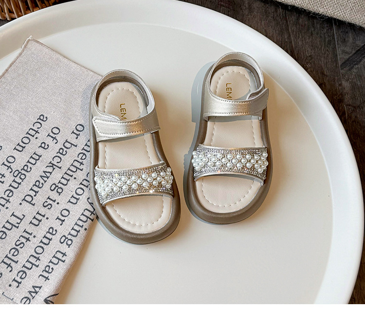 2024 새로운 여름 어린이 신발 어린이 빛나는 샌들 여자 통기성 캐주얼 신발 오픈 발가락 진주 어린이 신발스토어 가기