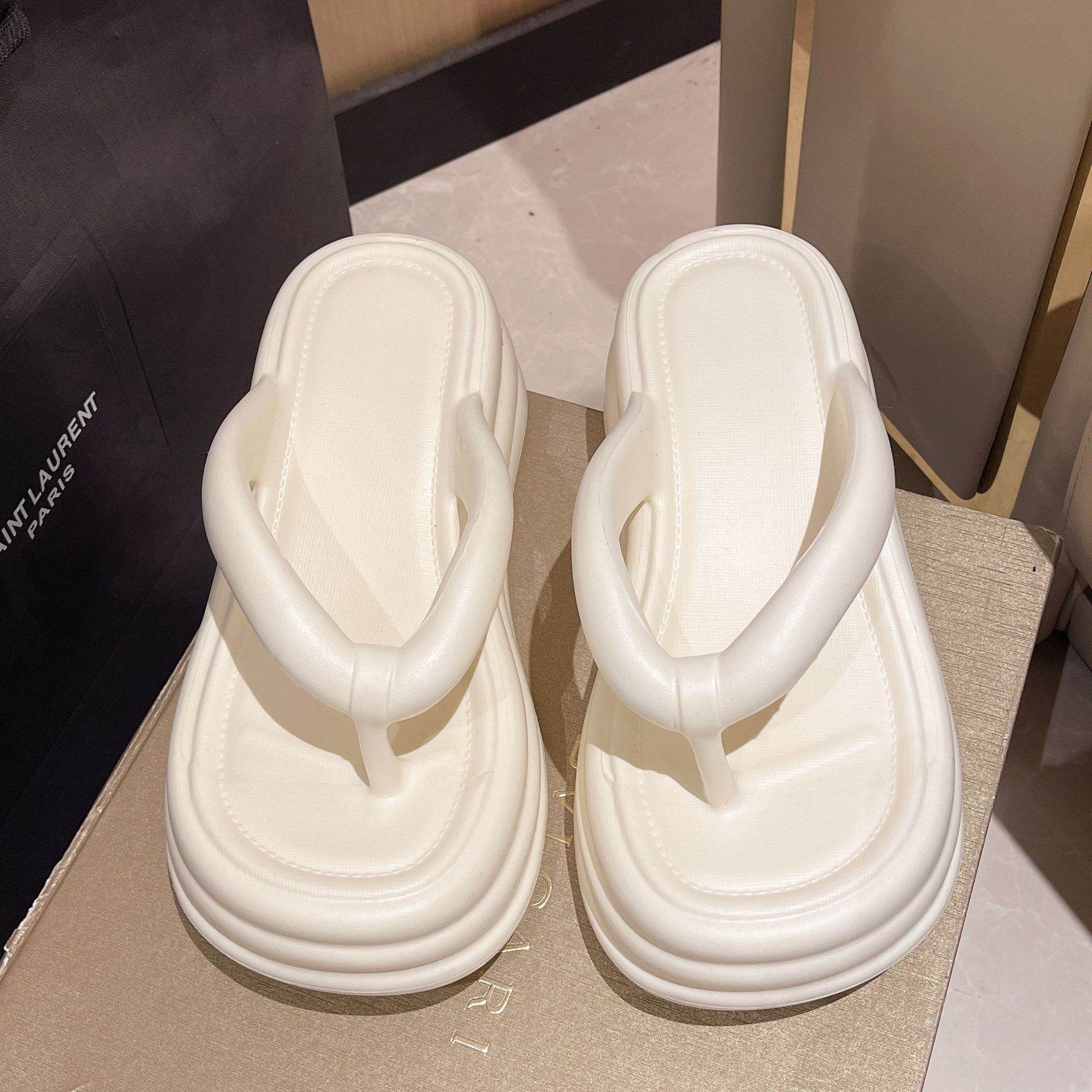 새로운 EVA 탈취제 플립 플롭 여성 아우터 착용 두꺼운 밑창 클립 오프 미끄럼 방지 샌들 여름 해변 느낌스토어 가기
