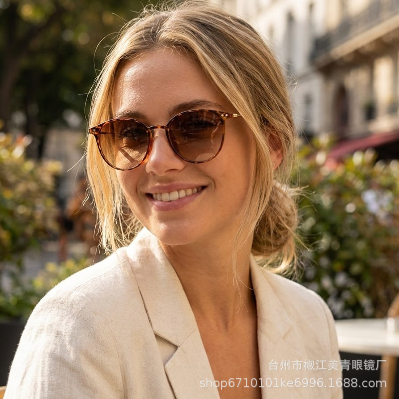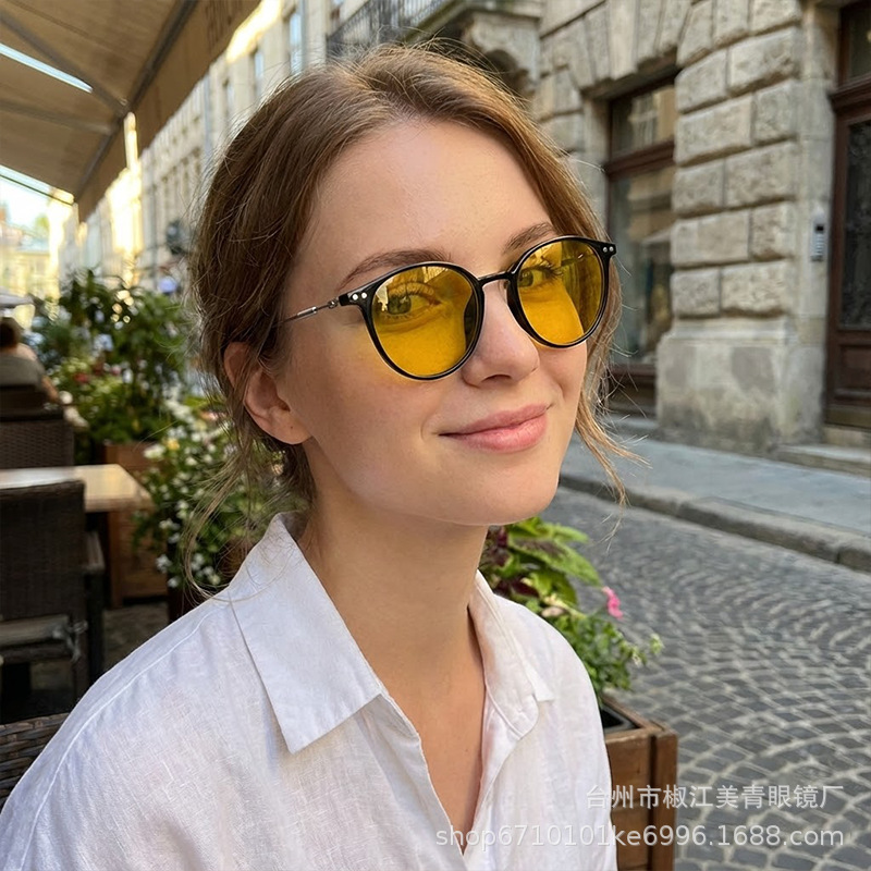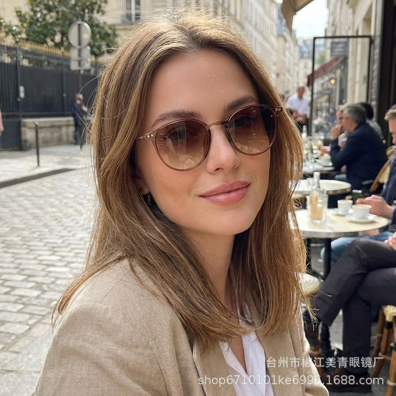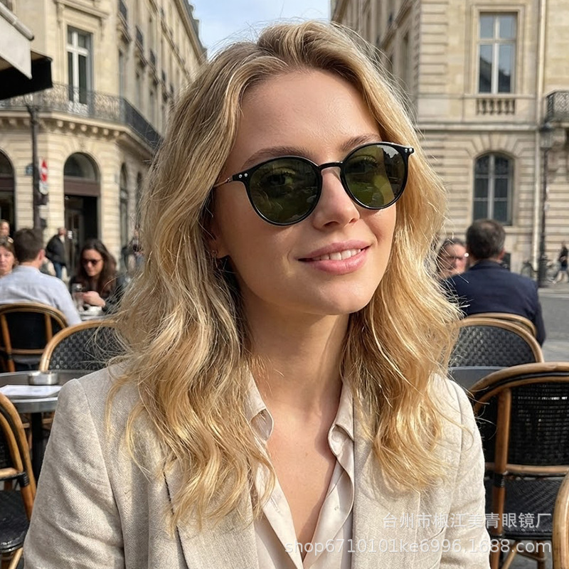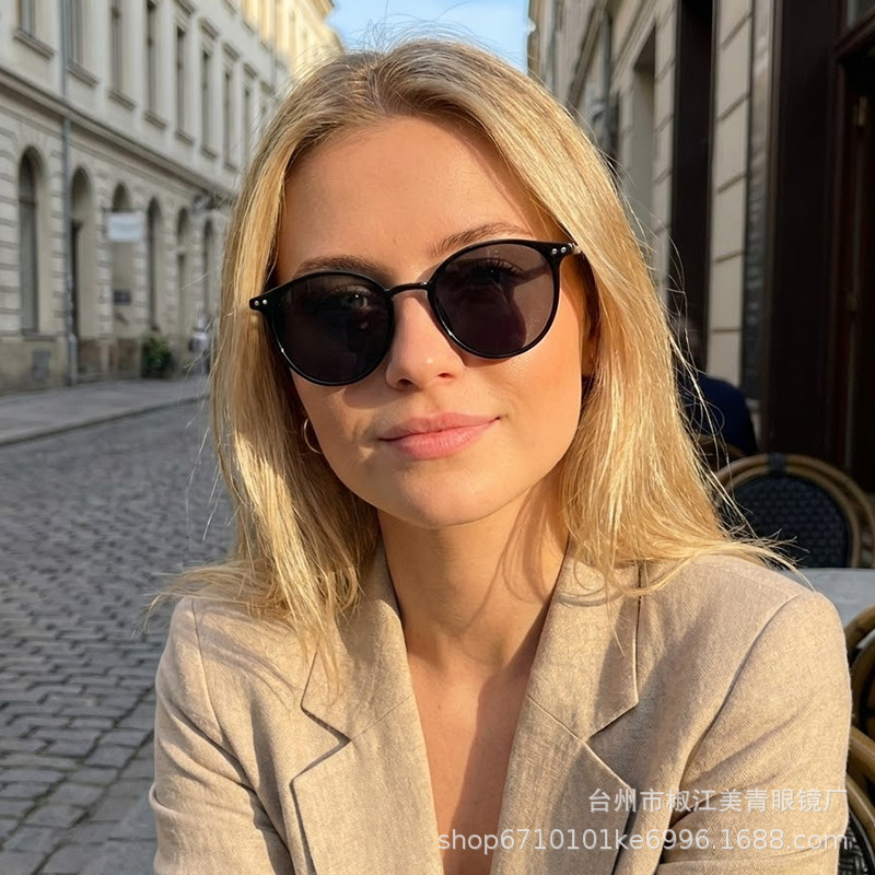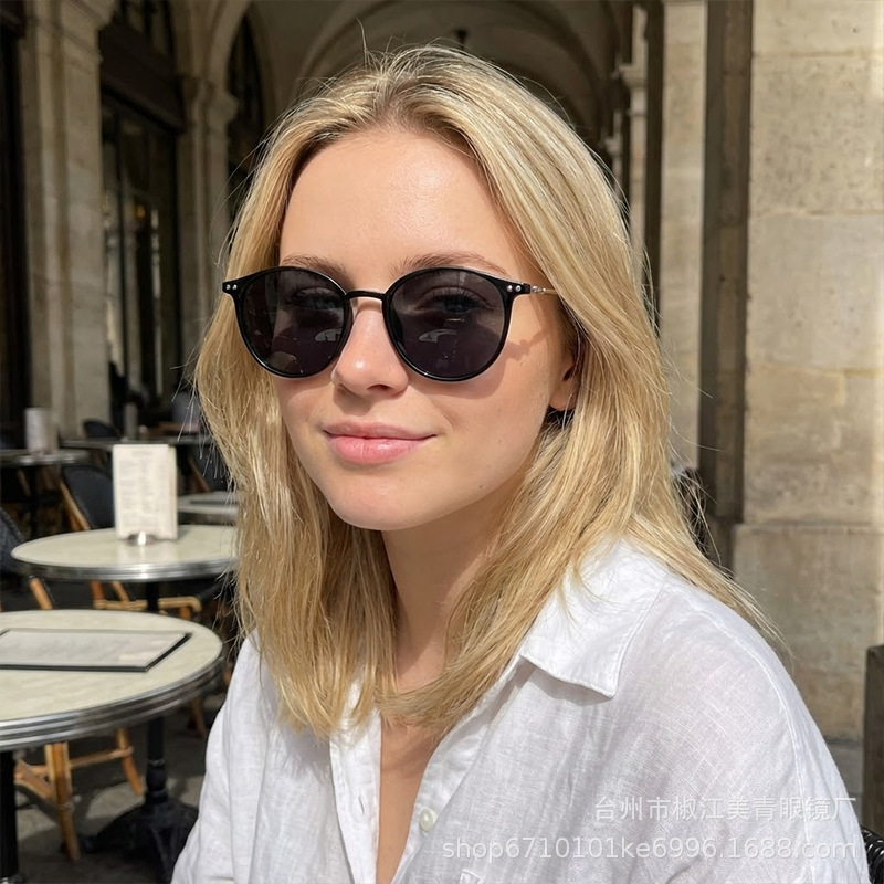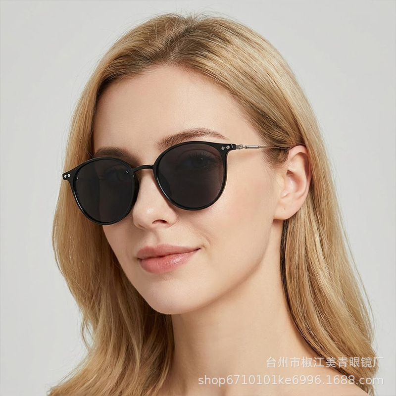 여성용 선글라스, 고급형, 자외선 차단, 얼굴 노출 방지, 남성용 작은 눈부심 방지, 운전용 금속 원형 프레임 편광