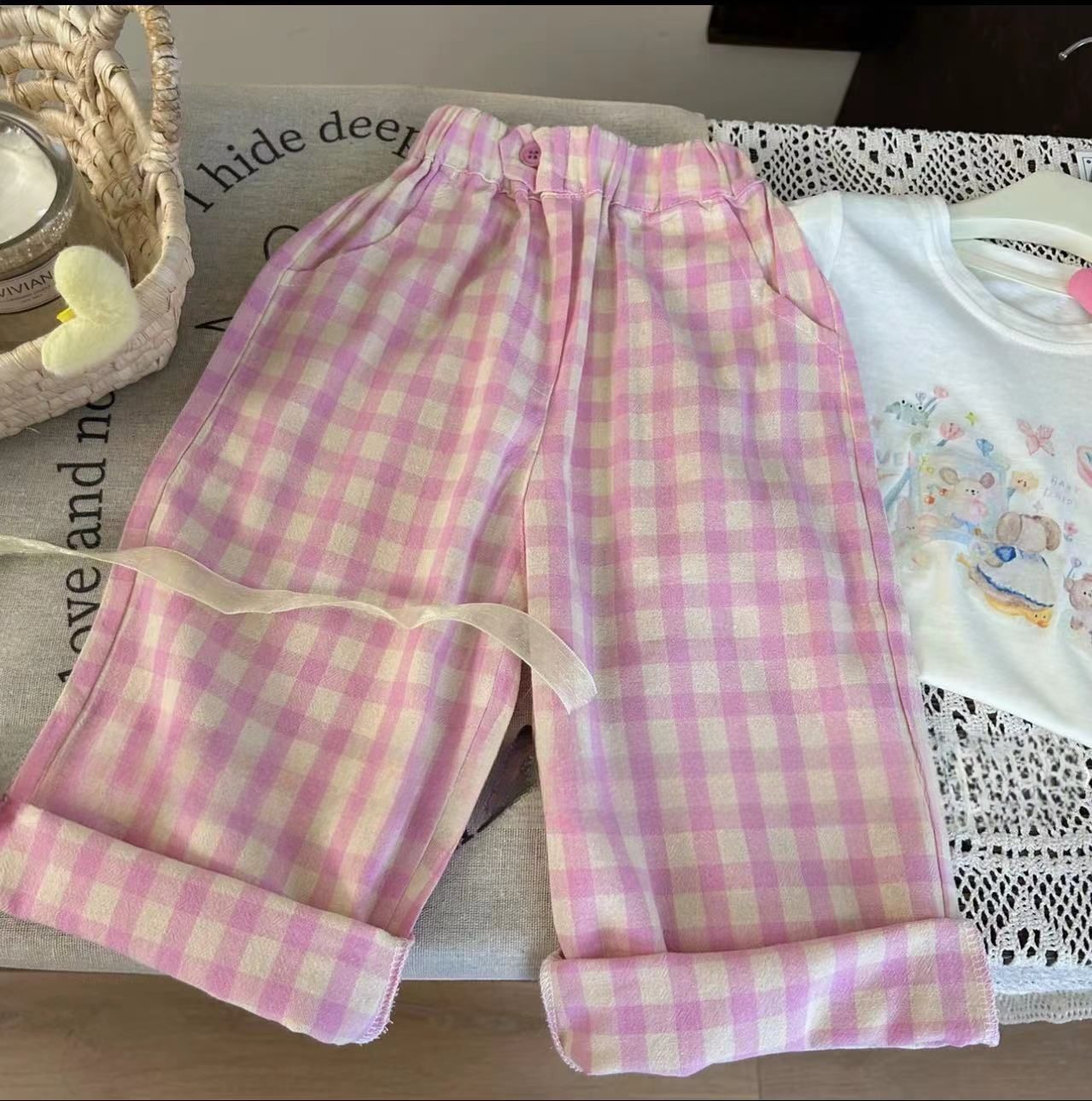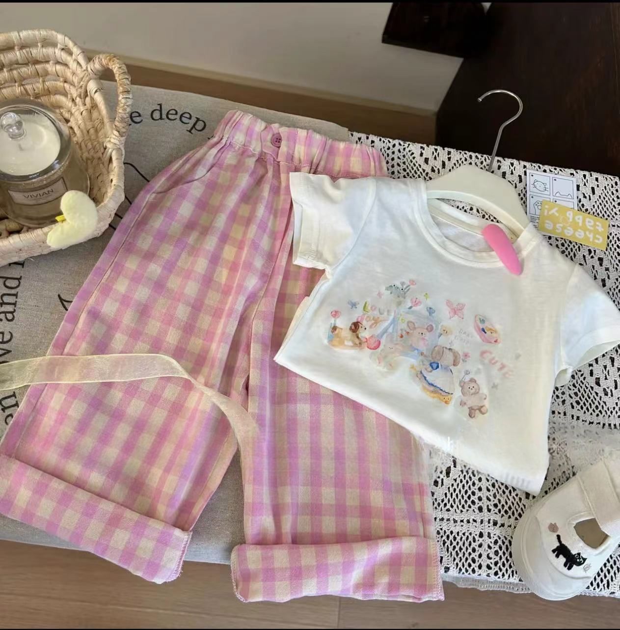2024 여름 어린이 새 소녀 만화 반팔 티셔츠 귀여운 슈퍼 귀여운 최고 유료 바지 세트 투피스 세트스토어 가기