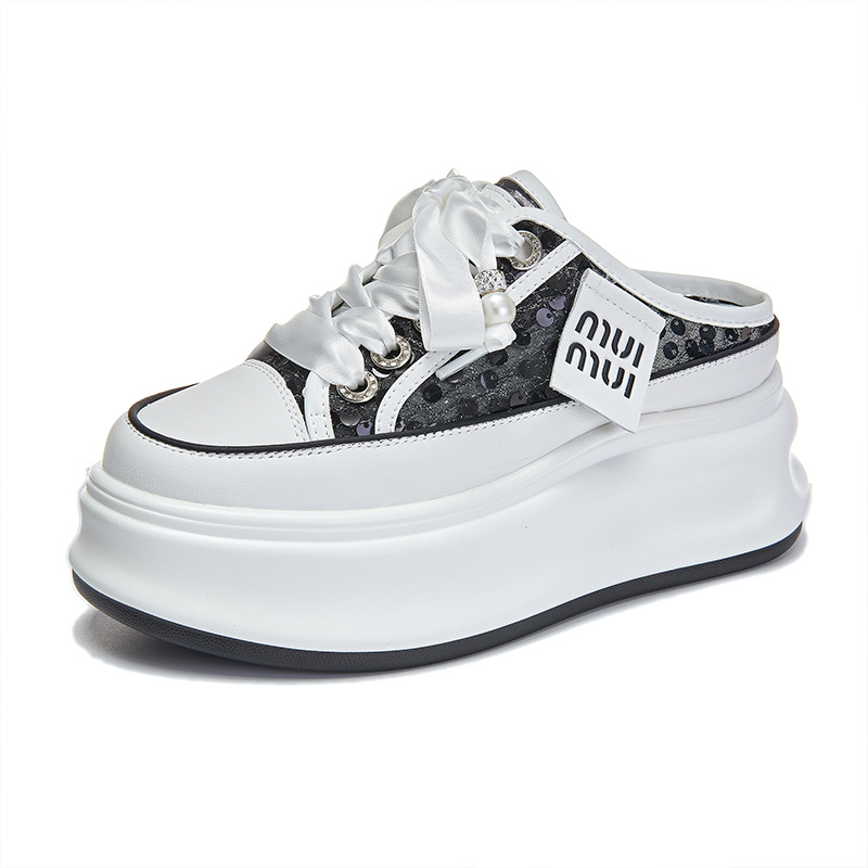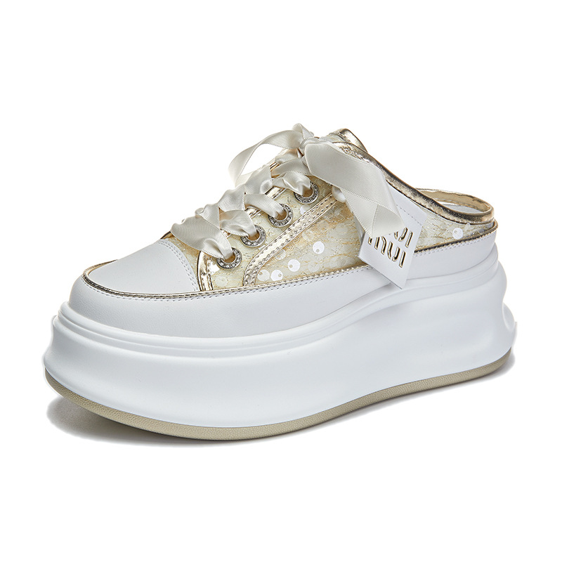 2025 봄 여름 신상 캐주얼 키높이 두꺼운 밑창 슬리퍼 천연 가죽 슬림 여성화 다용도 플랫폼 샌들