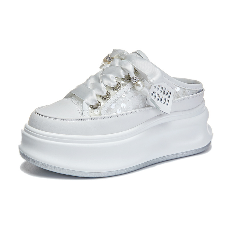 2025 봄 여름 신상 캐주얼 키높이 두꺼운 밑창 슬리퍼 천연 가죽 슬림 여성화 다용도 플랫폼 샌들스토어 가기