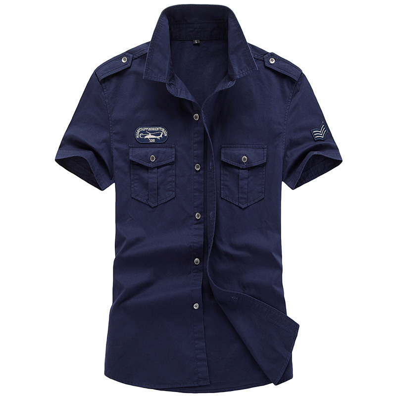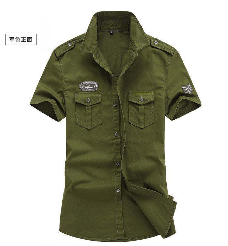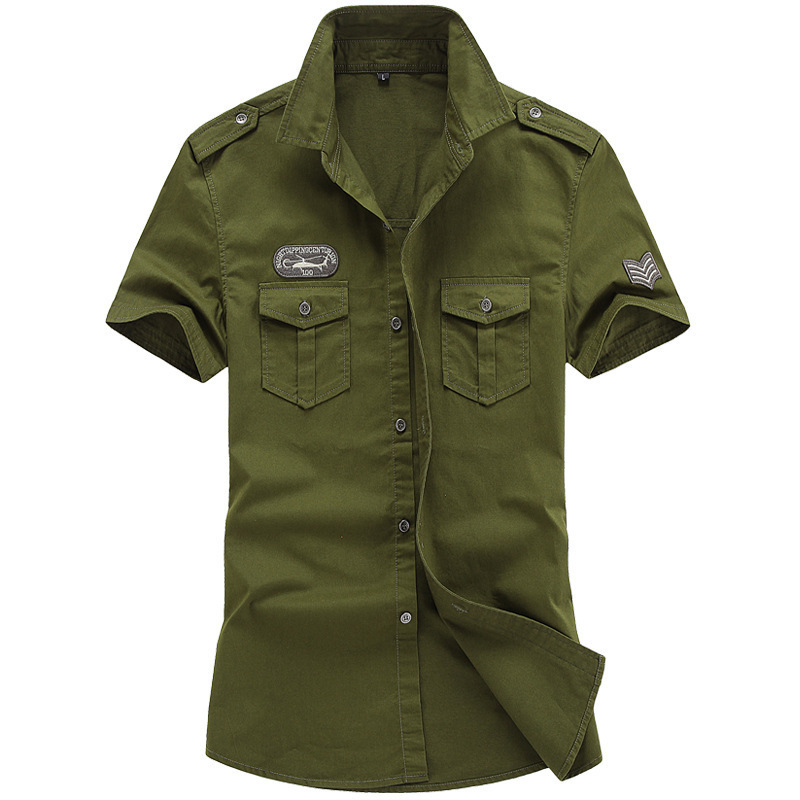 2019 여름 반팔 셔츠 남성 군 청소년 캐주얼 한국 스타일 슬림 핏 퓨어 코튼 셔츠 남자의 군사 작업복