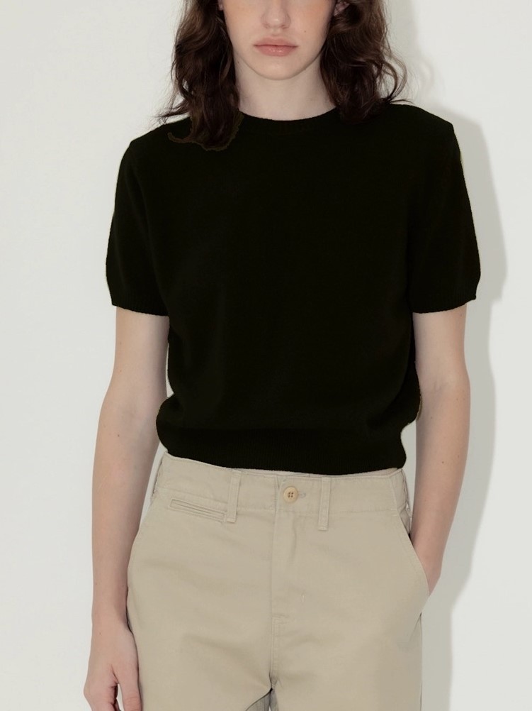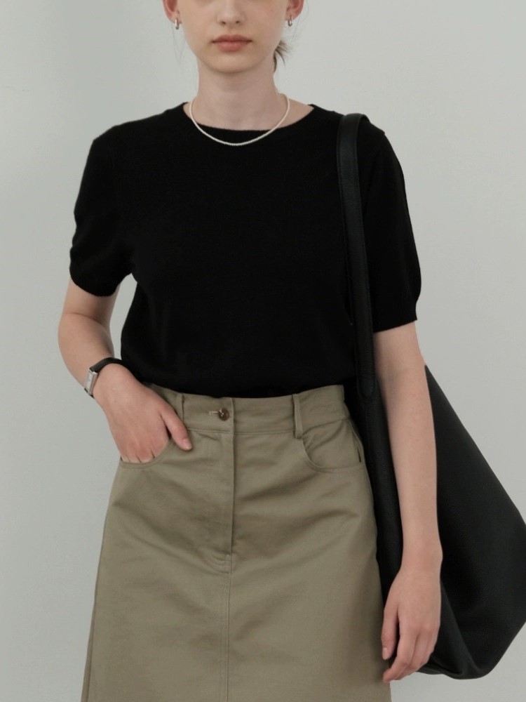 봄과 여름 간단한 틈새 크루 넥 그레이 반팔 스웨터 올 매치 레트로 통근 티셔츠 여성용 스웨터 반팔 탑스토어 가기