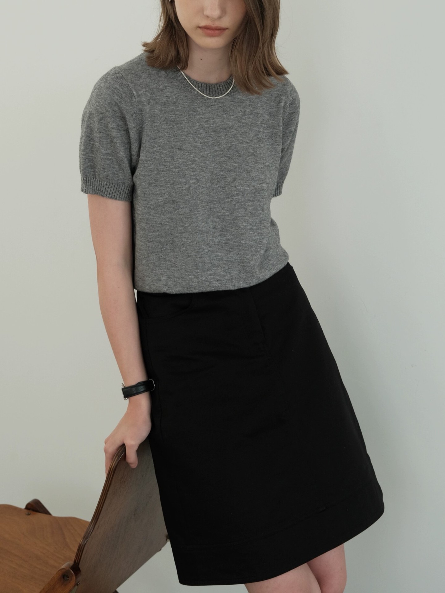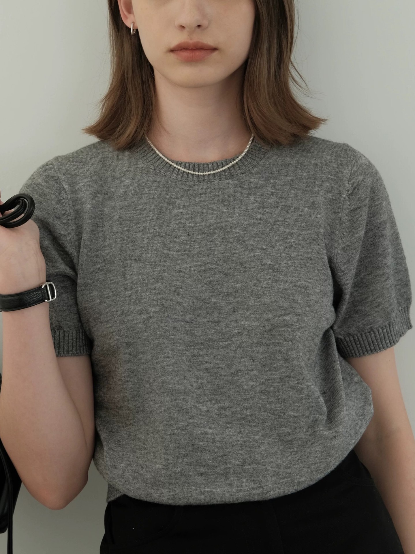 봄과 여름 간단한 틈새 크루 넥 그레이 반팔 스웨터 올 매치 레트로 통근 티셔츠 여성용 스웨터 반팔 탑