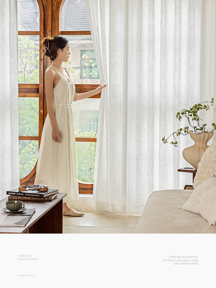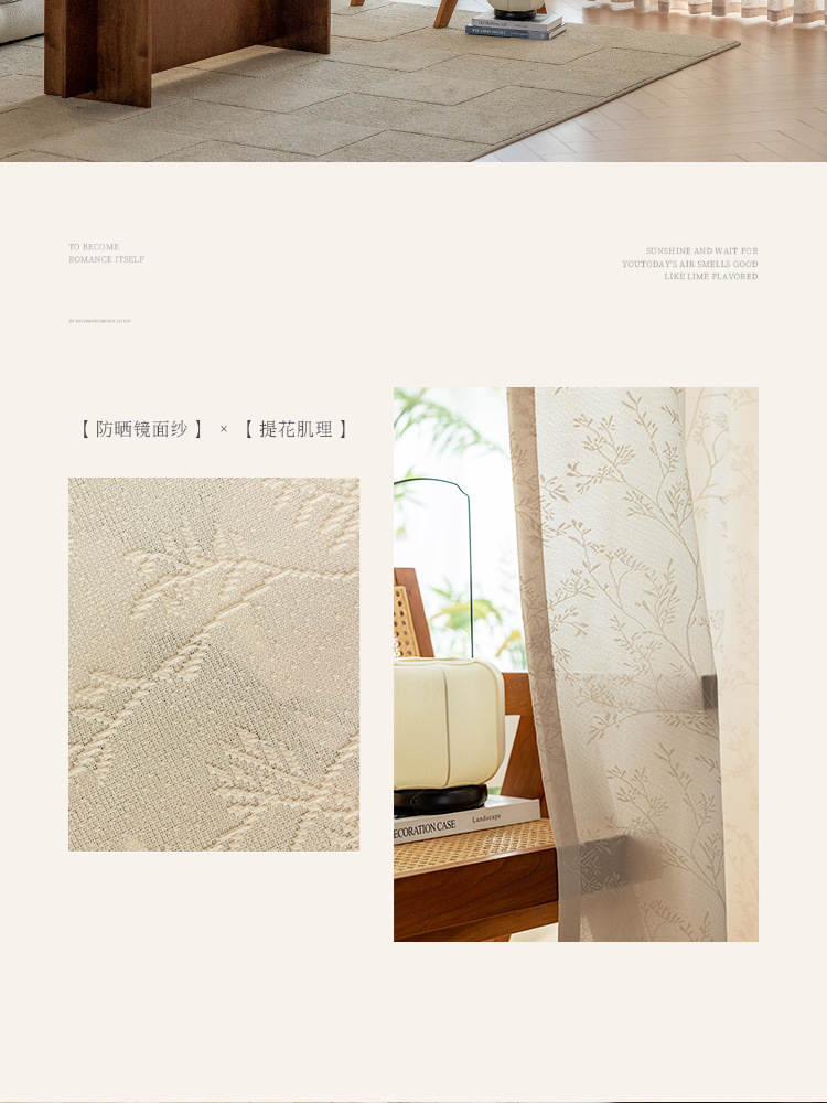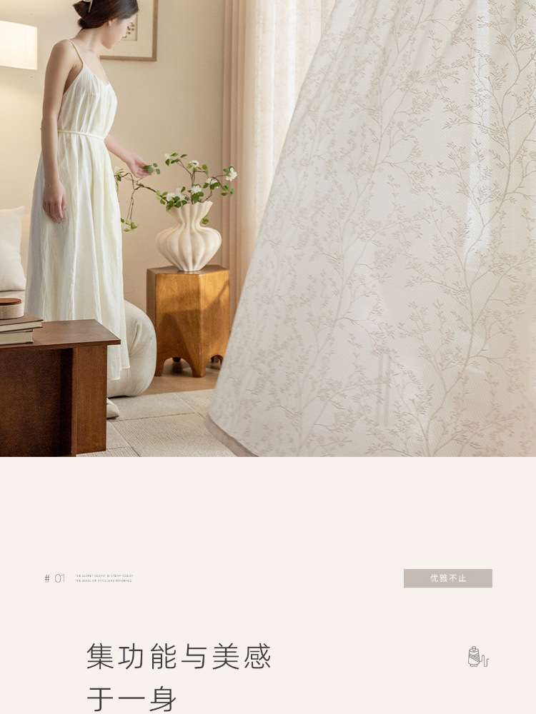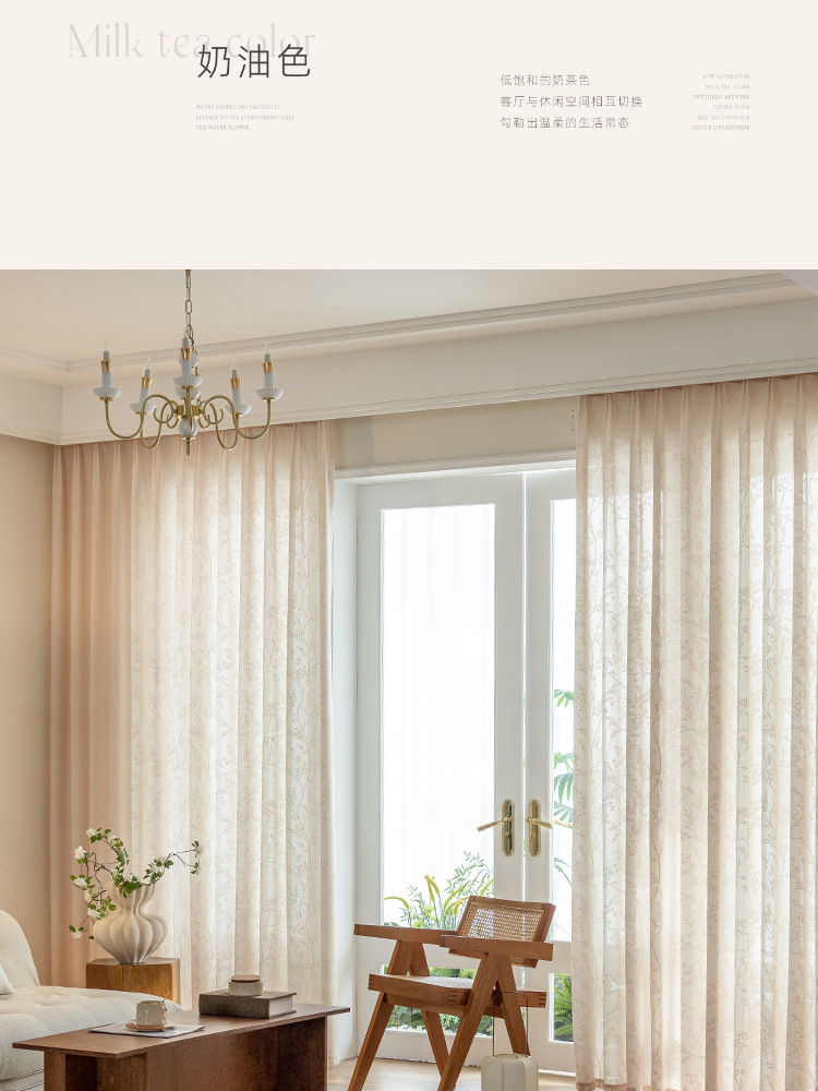 일본식 목가적 태양 보호 및 단열 거즈 커튼 거울 거즈 커튼 투명 및 불투과성 연구실 발코니 크림 창스토어 가기