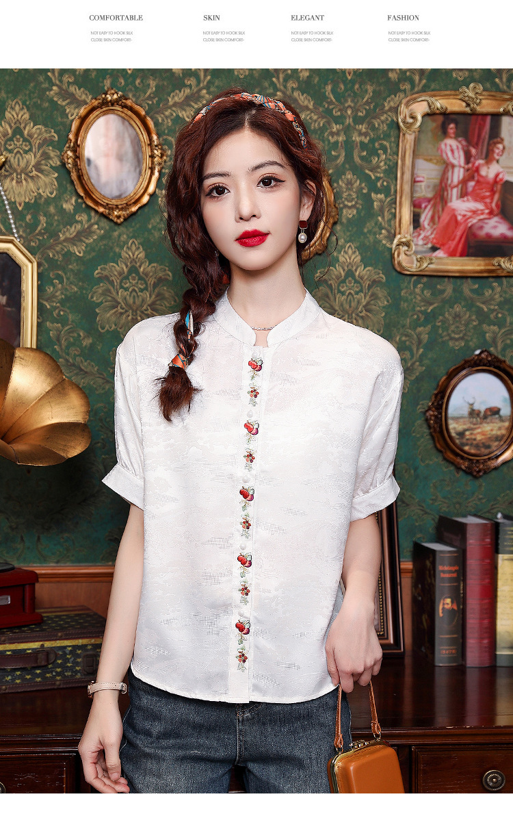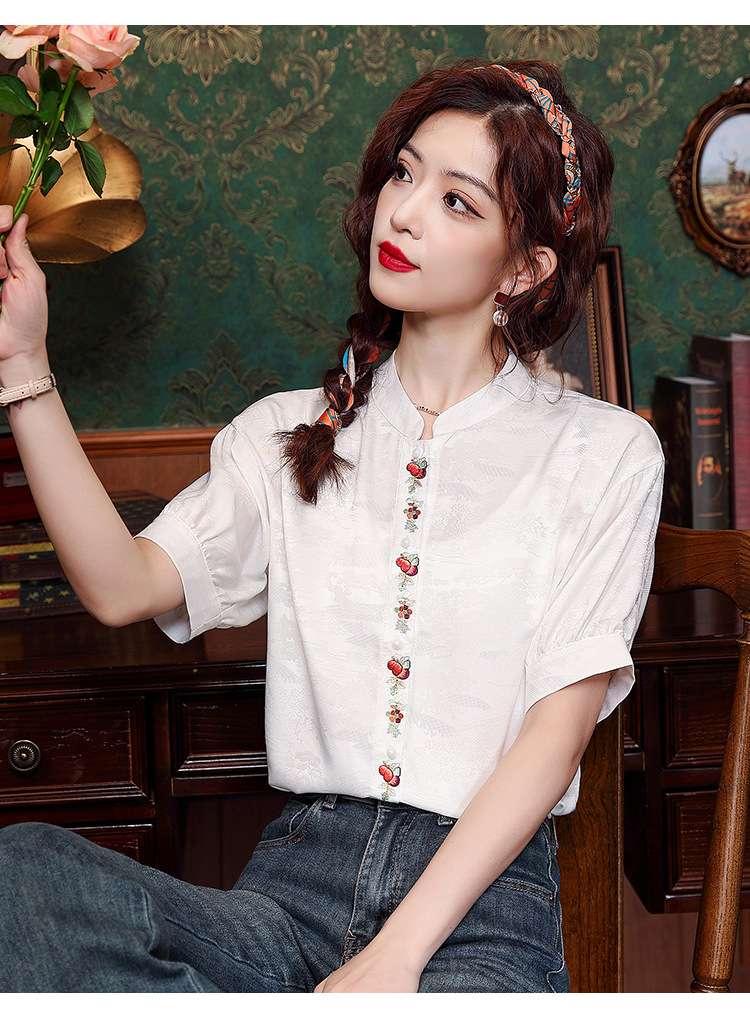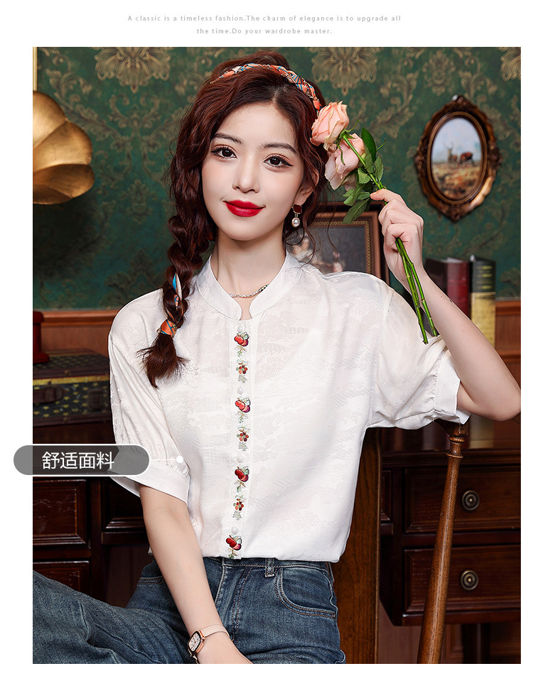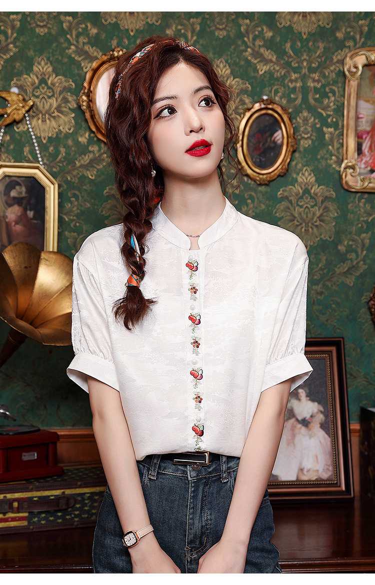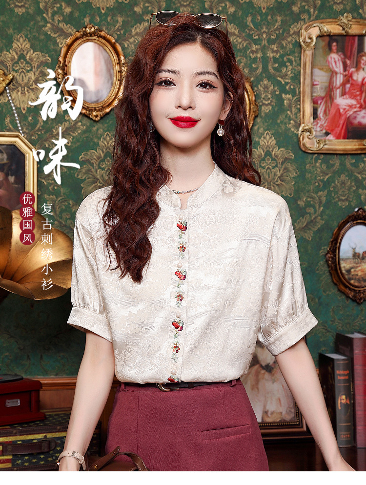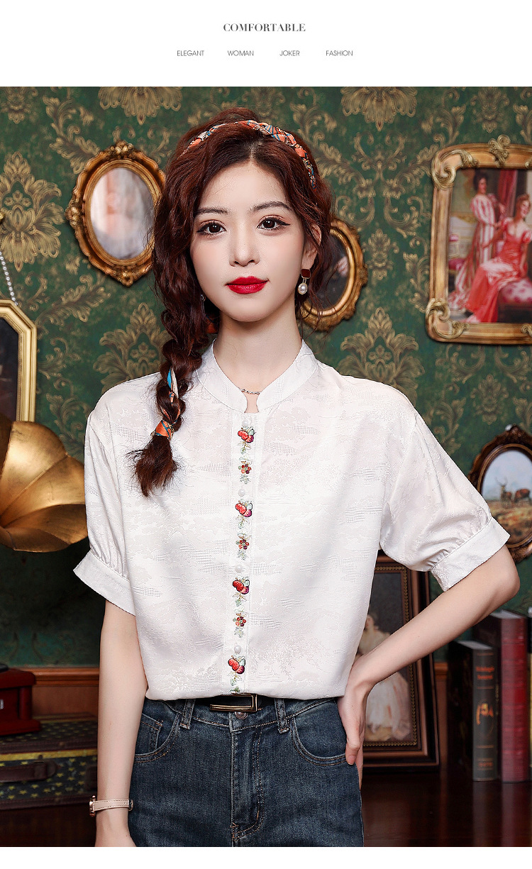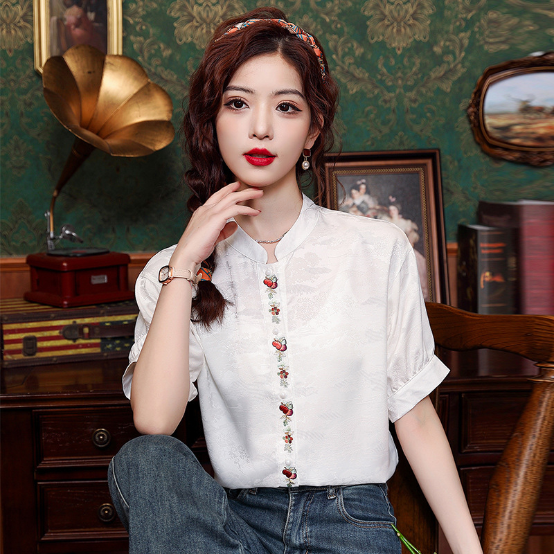 새로운 중국 자수 셔츠 여성 여름 원피스 새로운 디자인 센스 국가 스타일 작은 셔츠 반팔 탑스토어 가기