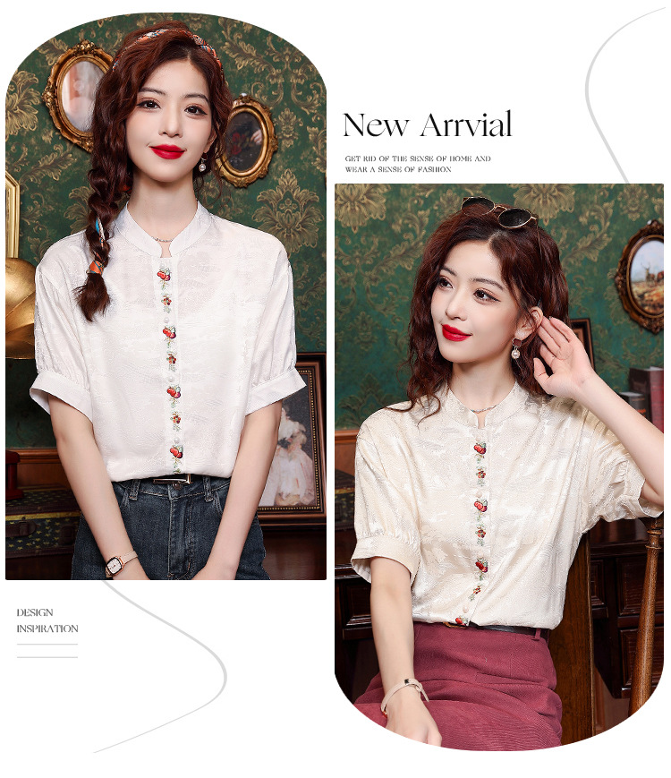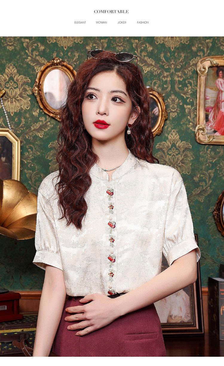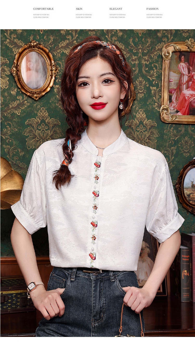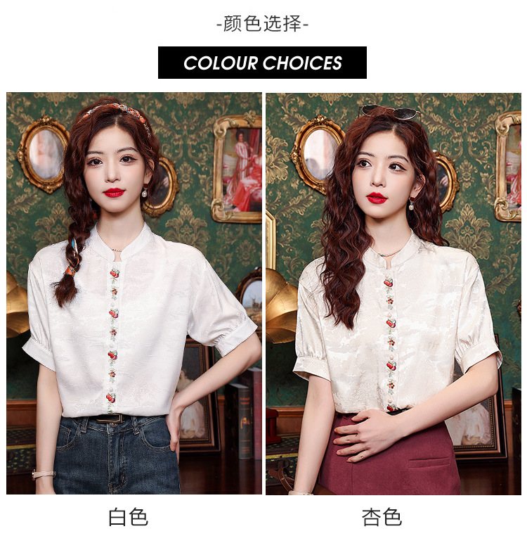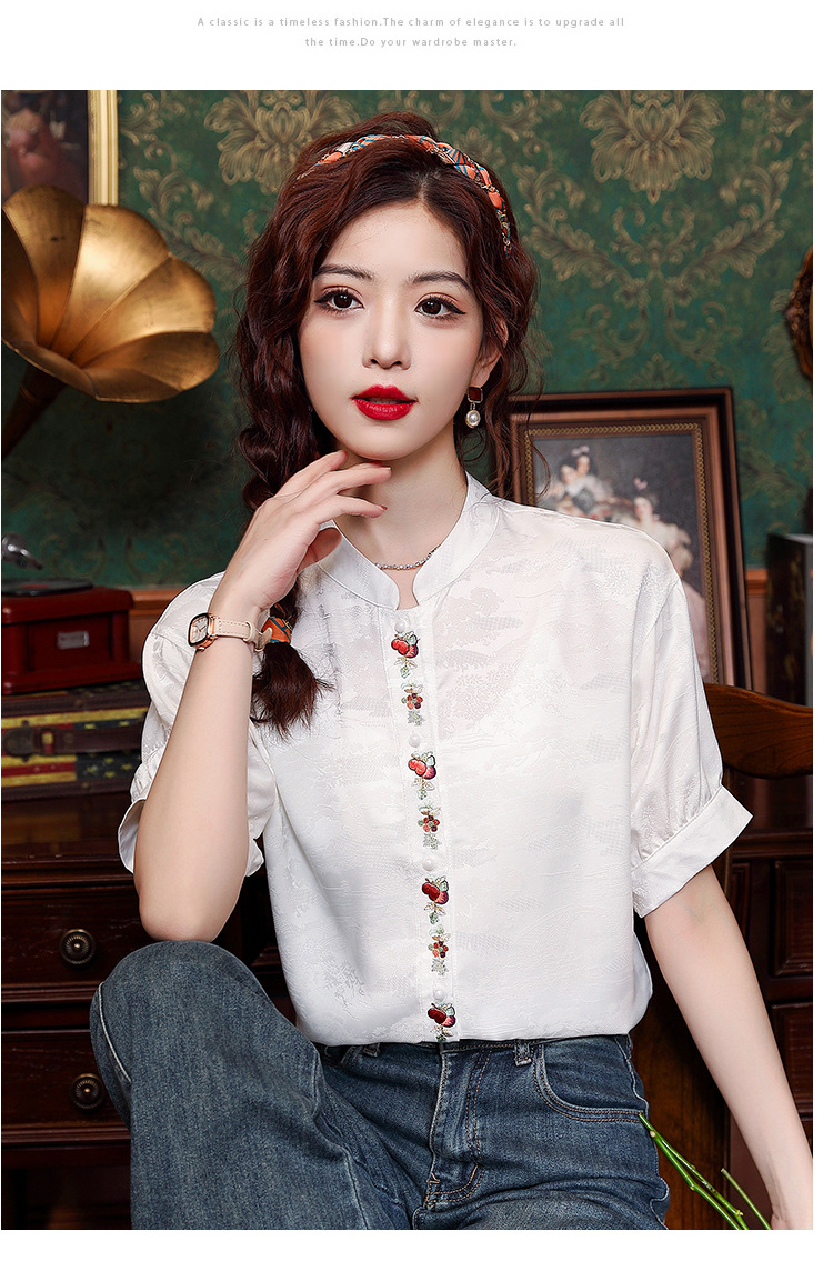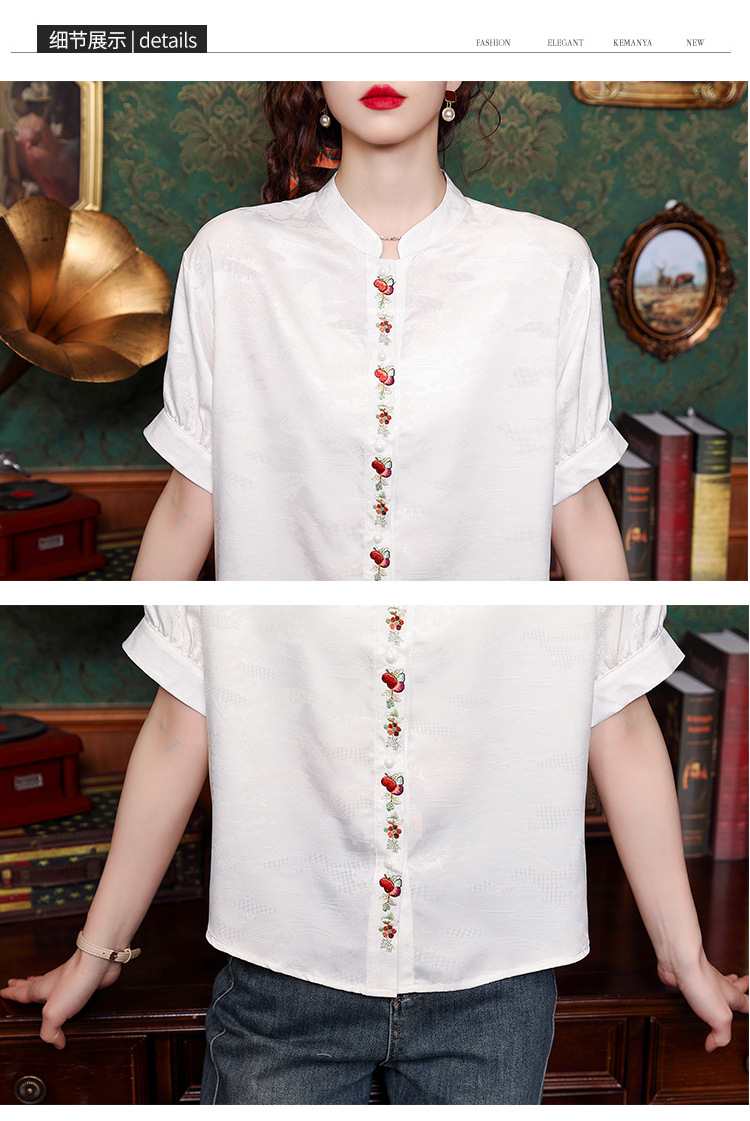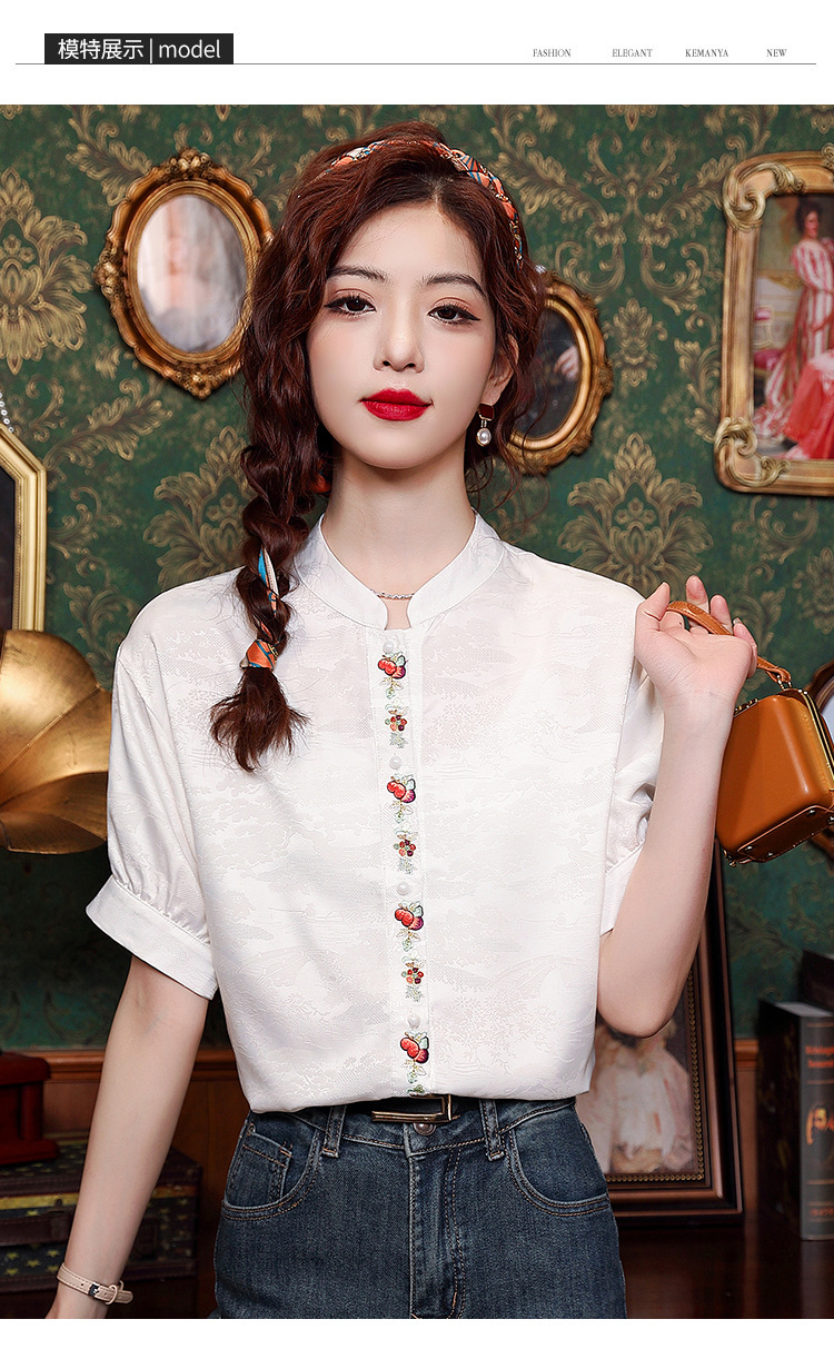 새로운 중국 자수 셔츠 여성 여름 원피스 새로운 디자인 센스 국가 스타일 작은 셔츠 반팔 탑스토어 가기