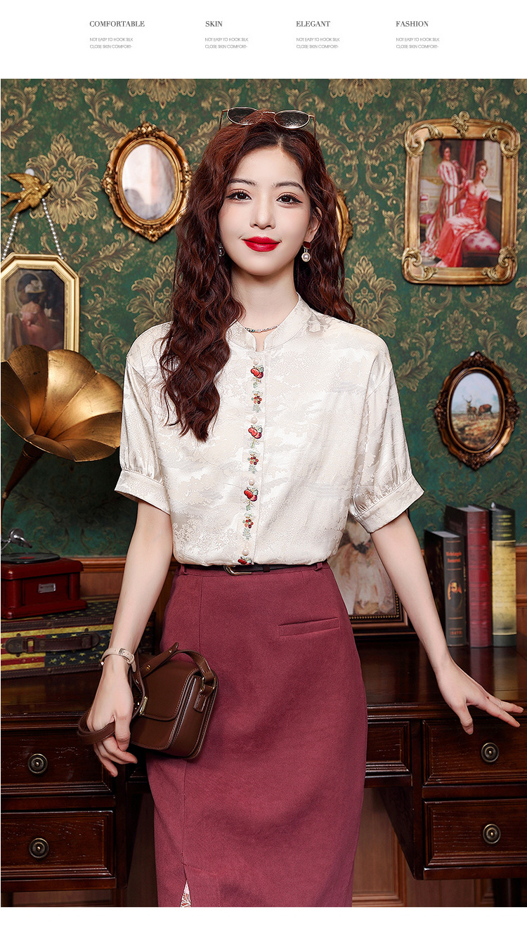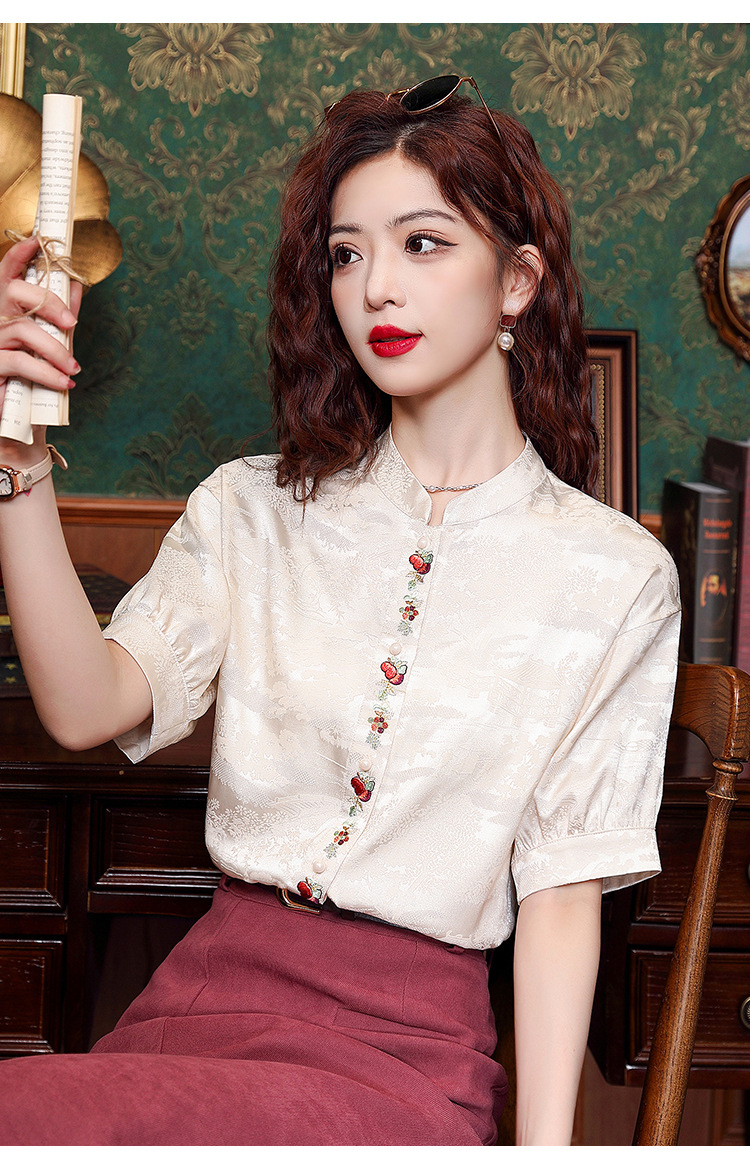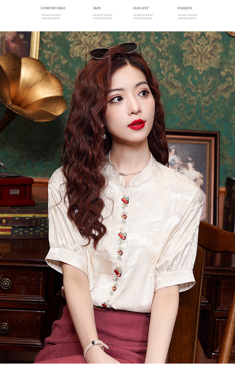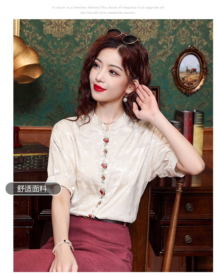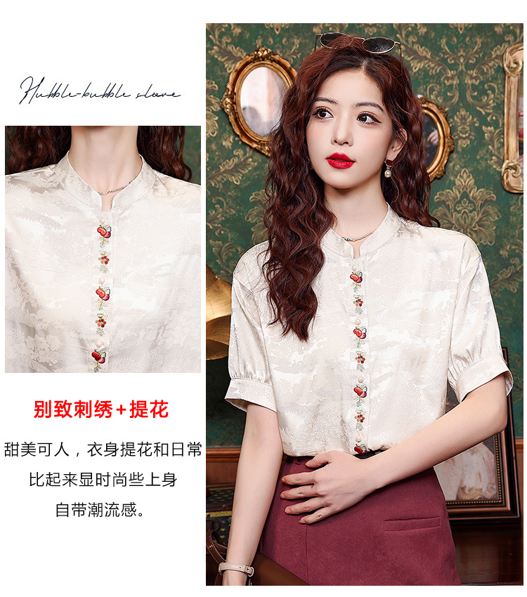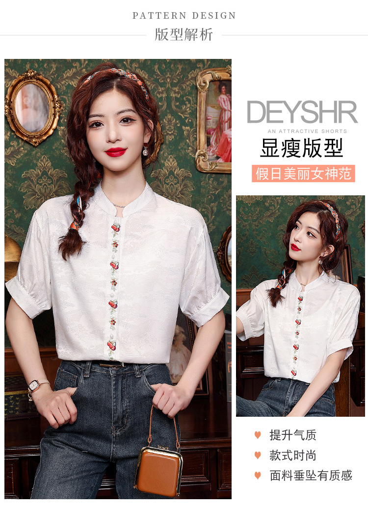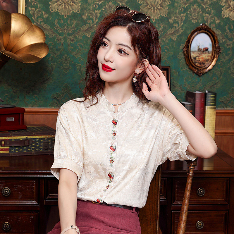 새로운 중국 자수 셔츠 여성 여름 원피스 새로운 디자인 센스 국가 스타일 작은 셔츠 반팔 탑스토어 가기