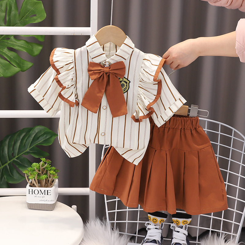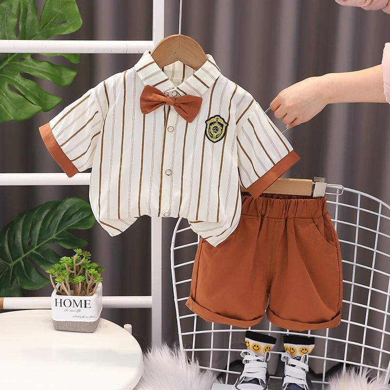 대외 무역 소년 소녀 짧은 소매 세트 여름 새 아기 귀여운 아기 형제 자매 수직 스트립 셔츠 세트 조수스토어 가기