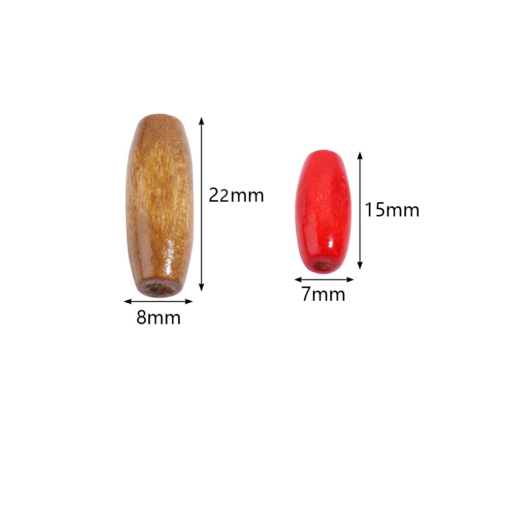枫木棒球形木珠8x22mm孔3mm 55g/包