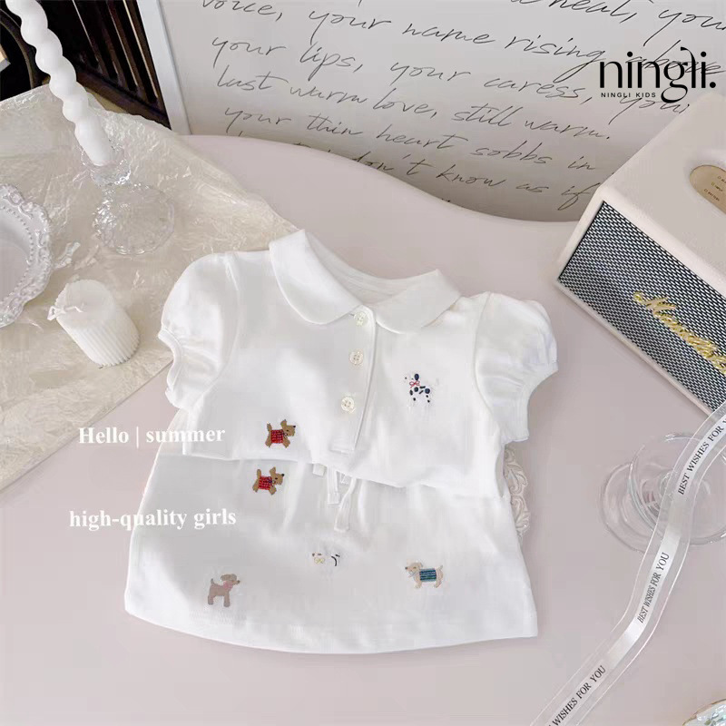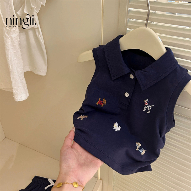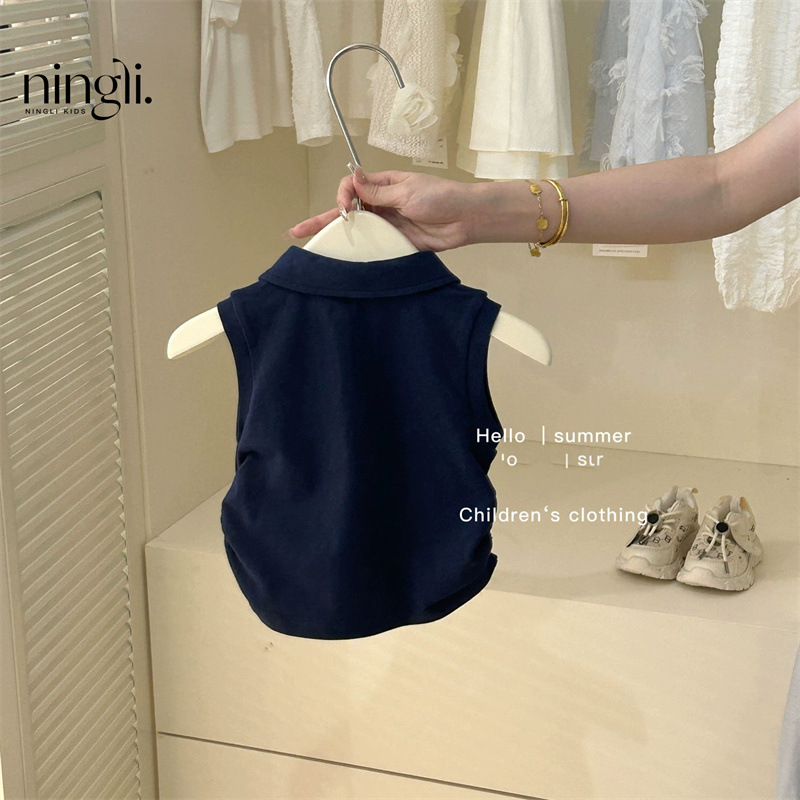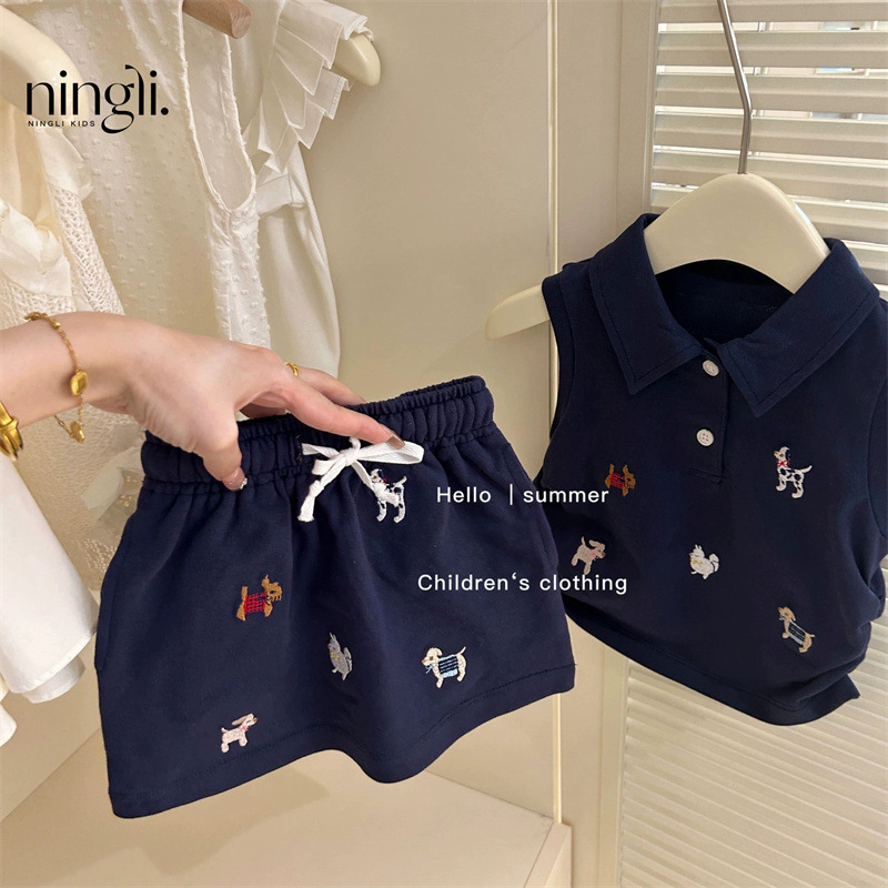 라임 소녀 여름 세트 새로운 스타일의 아기 대학 스타일 폴로 칼라 조끼 탑 스커트 투피스 세트