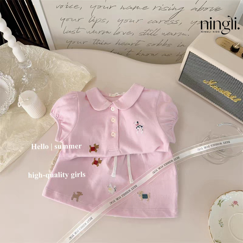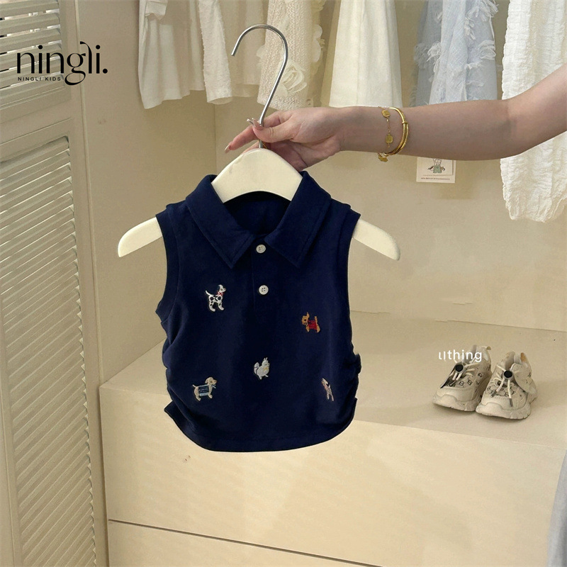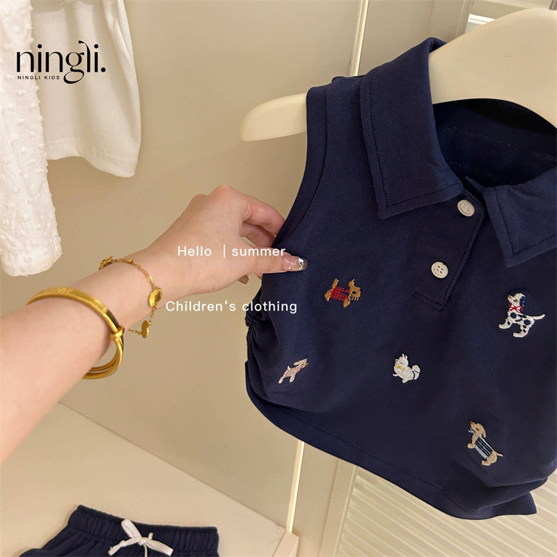 라임 소녀 여름 세트 새로운 스타일의 아기 대학 스타일 폴로 칼라 조끼 탑 스커트 투피스 세트스토어 가기