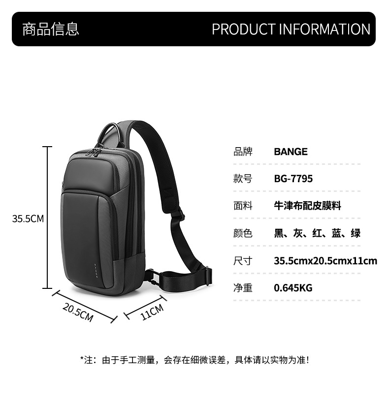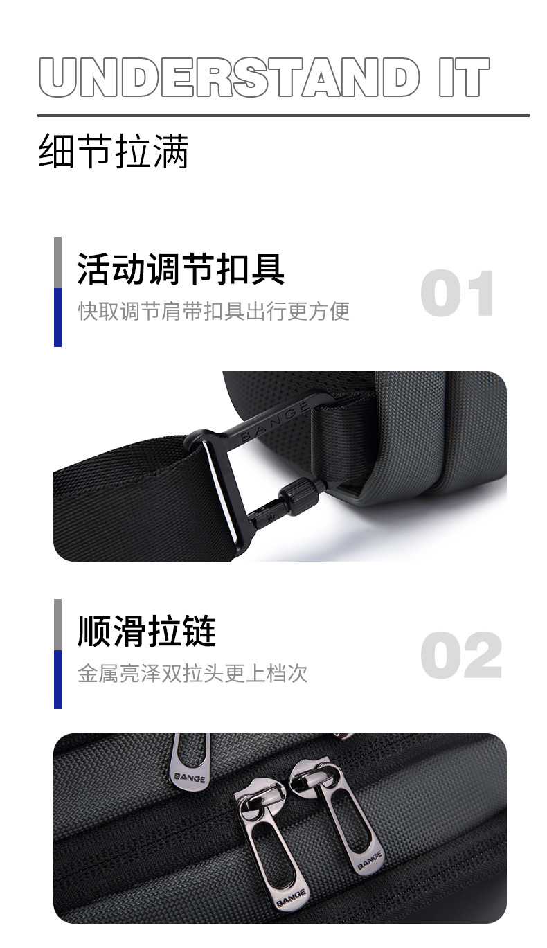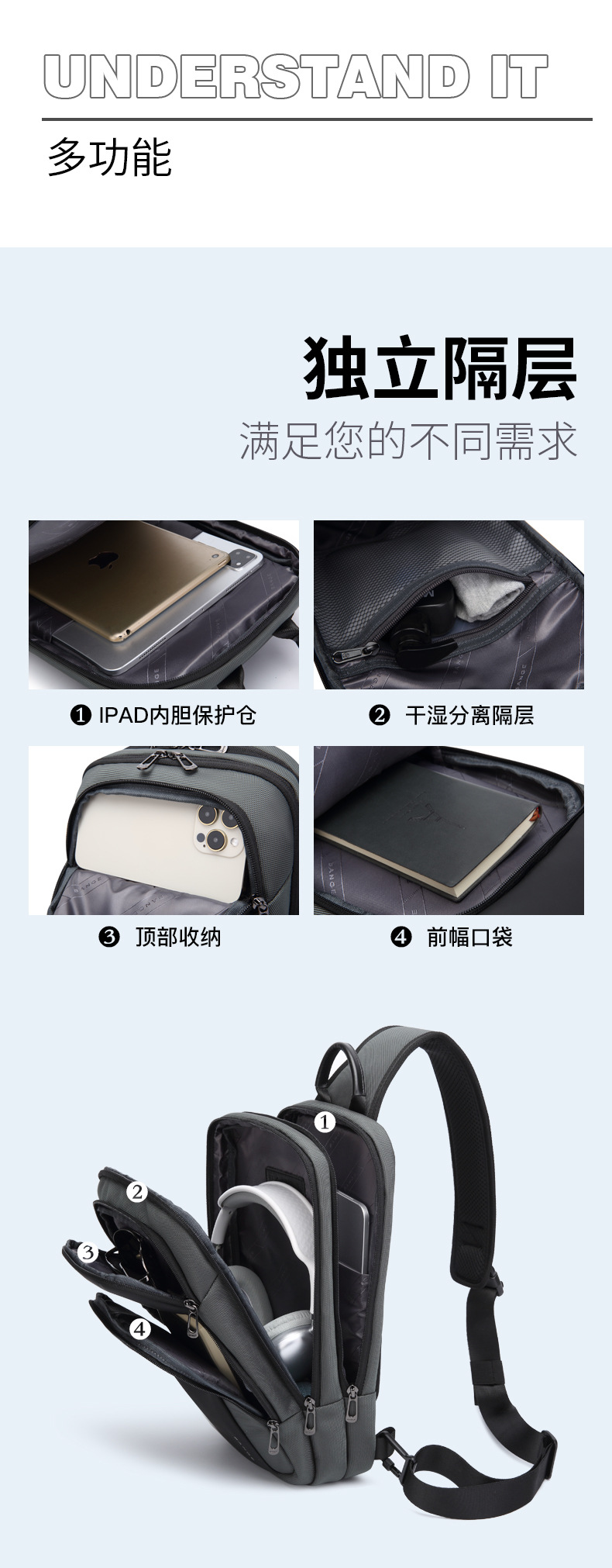 BANGE 새로운 남성 크로스 바디 백 패션 캐주얼 가슴 가방 대용량 건조 및 젖은 별도의 어깨 가방 슬링 백스토어 가기