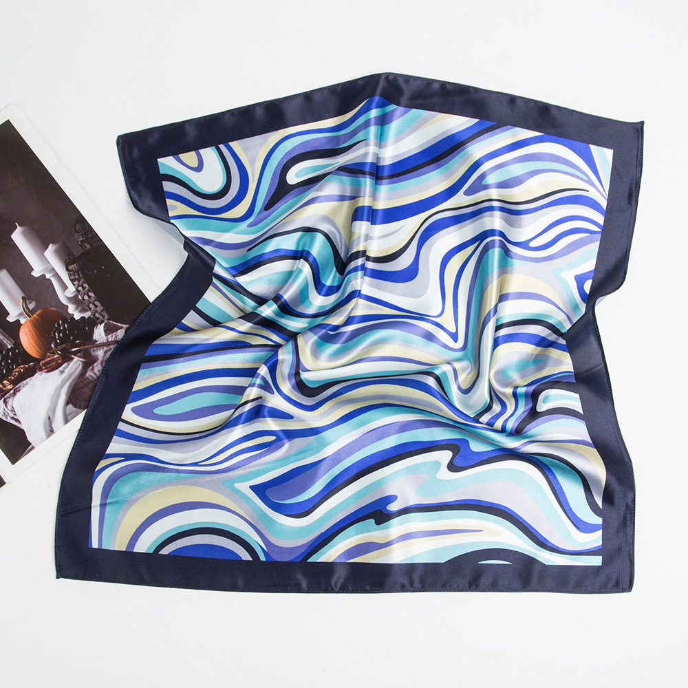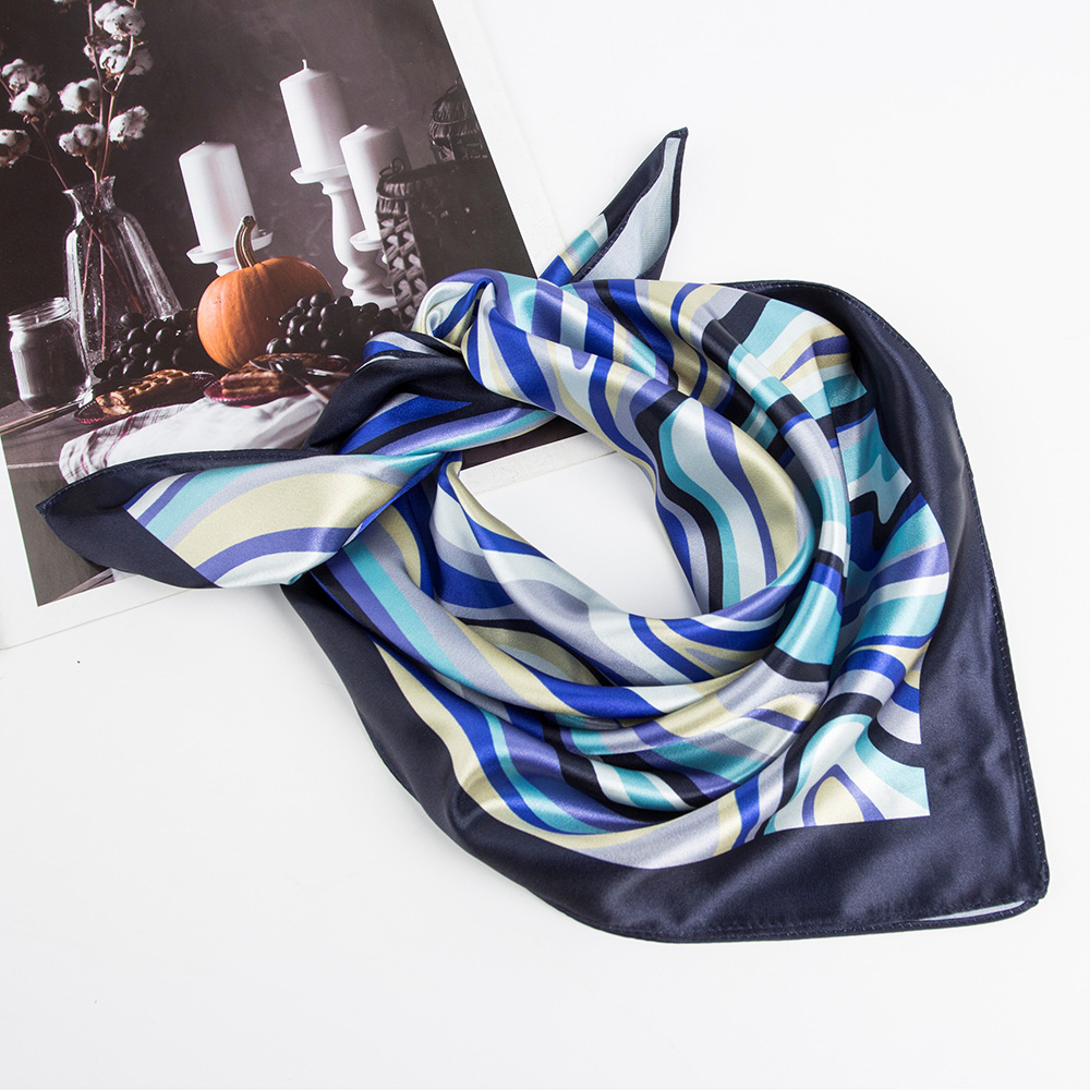 53 작은 광장 스카프 전문 스카프 실크 스카프 여성의 봄과 여름 스카프 한국 스타일 흑백 줄무늬 인쇄 스카프