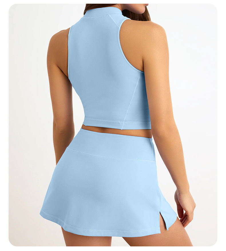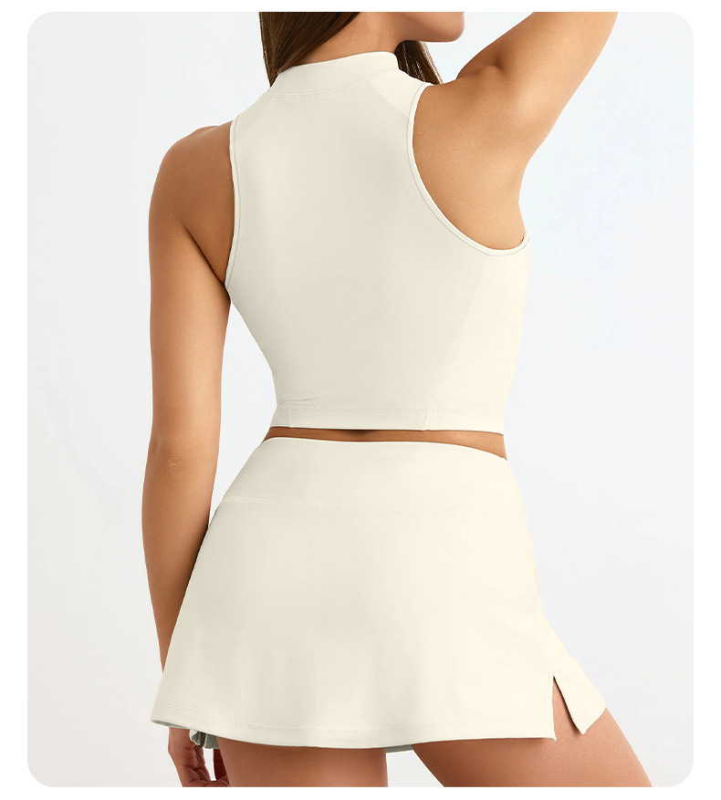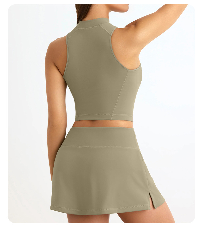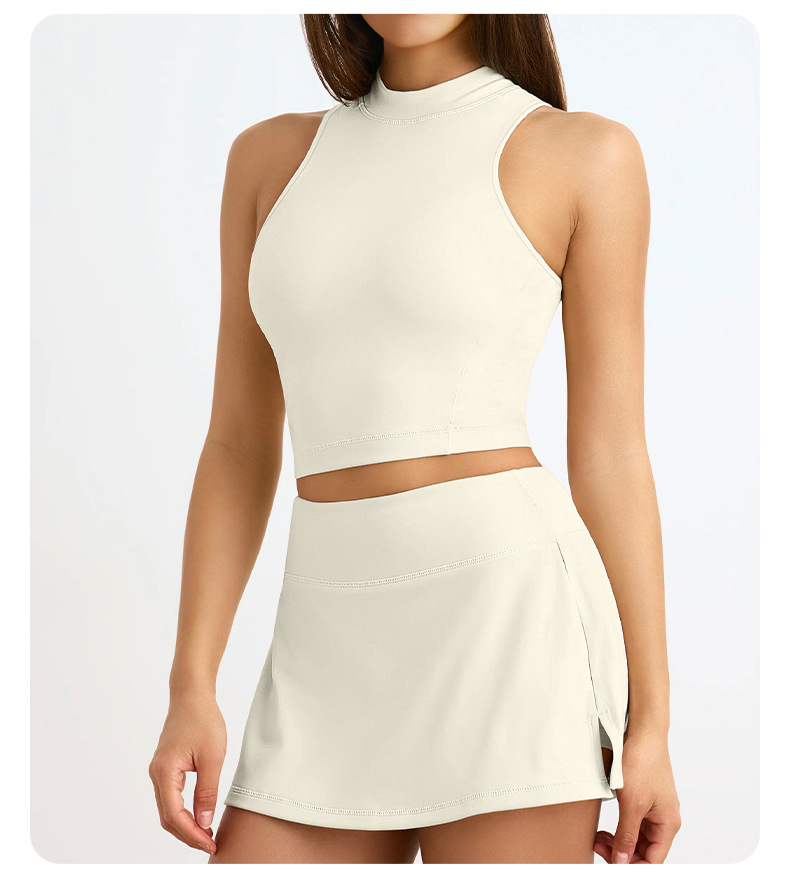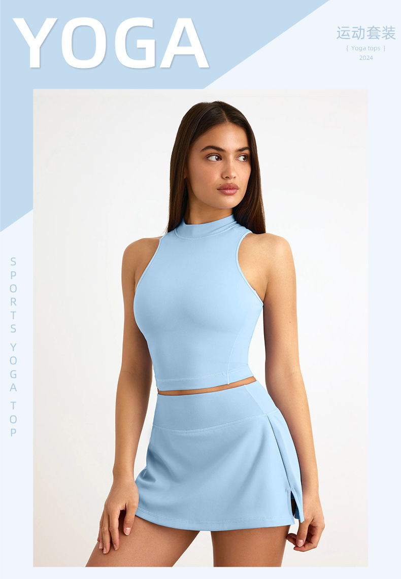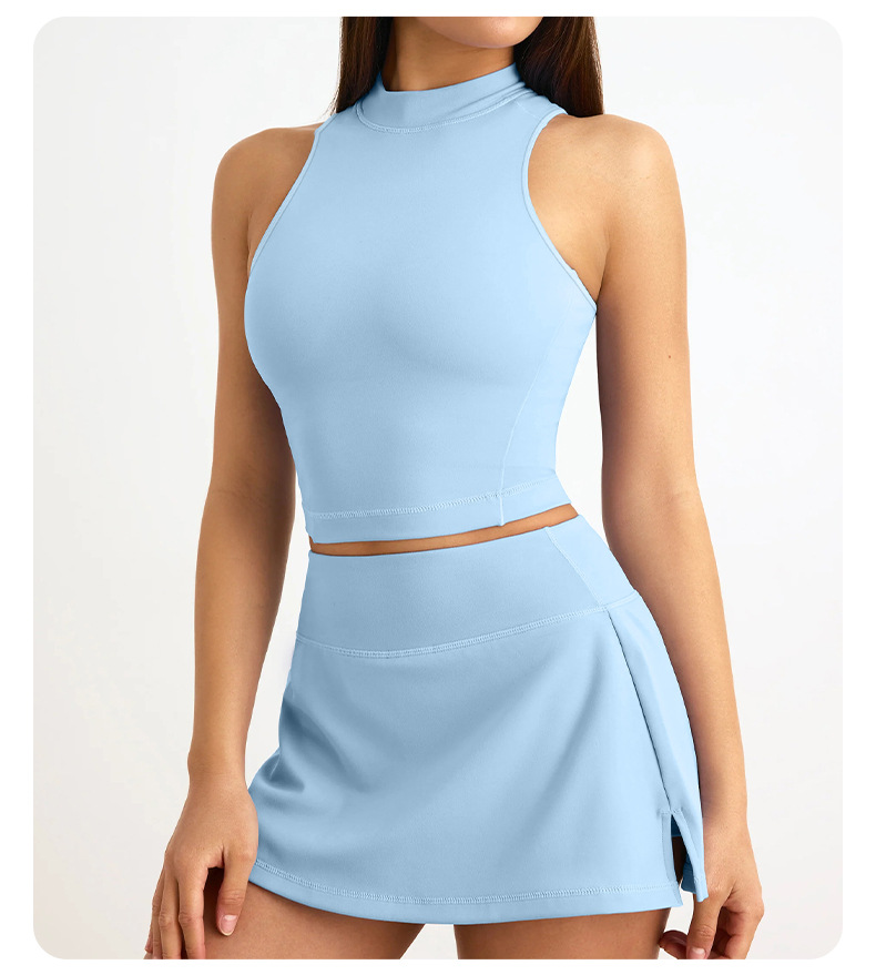 유럽과 미국의 국경을 넘나 드는 요가 세트 여름 스포츠 피트니스 빠른 건조 민소매 조끼 짧은 스커트 A 라인 스커트 요가 세트