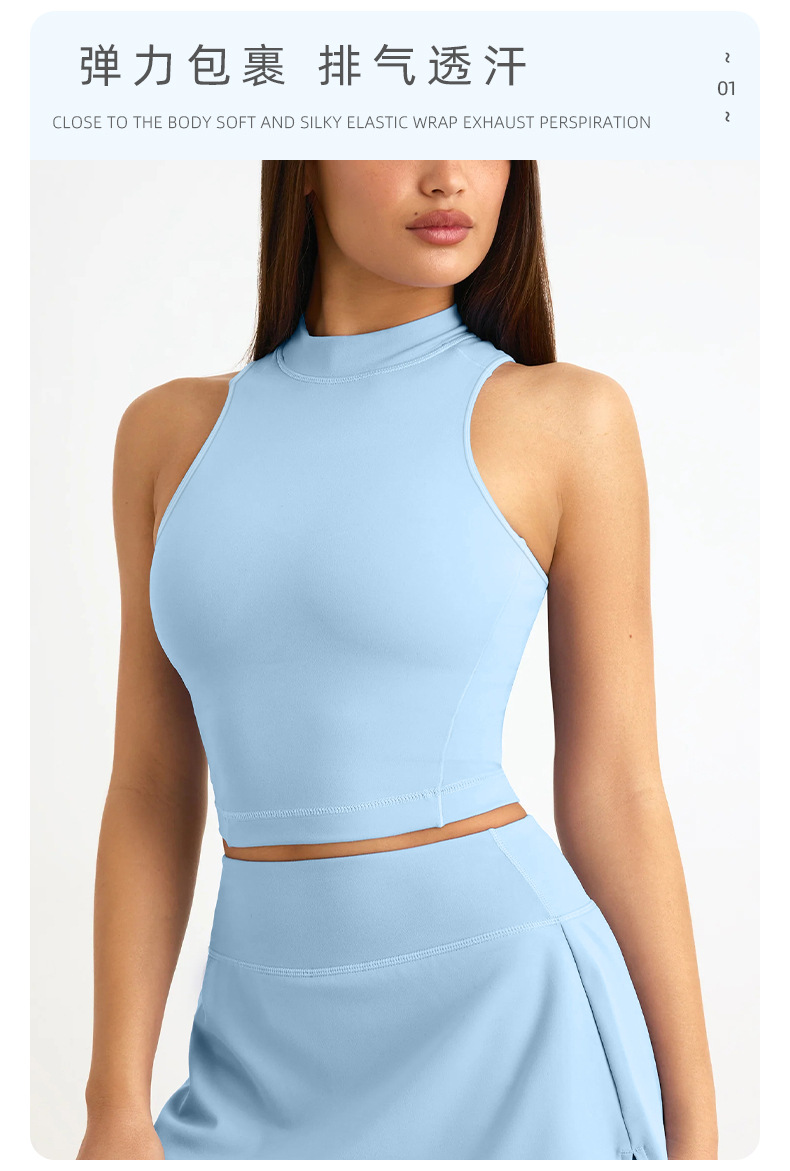 유럽과 미국의 국경을 넘나 드는 요가 세트 여름 스포츠 피트니스 빠른 건조 민소매 조끼 짧은 스커트 A 라인 스커트 요가 세트스토어 가기