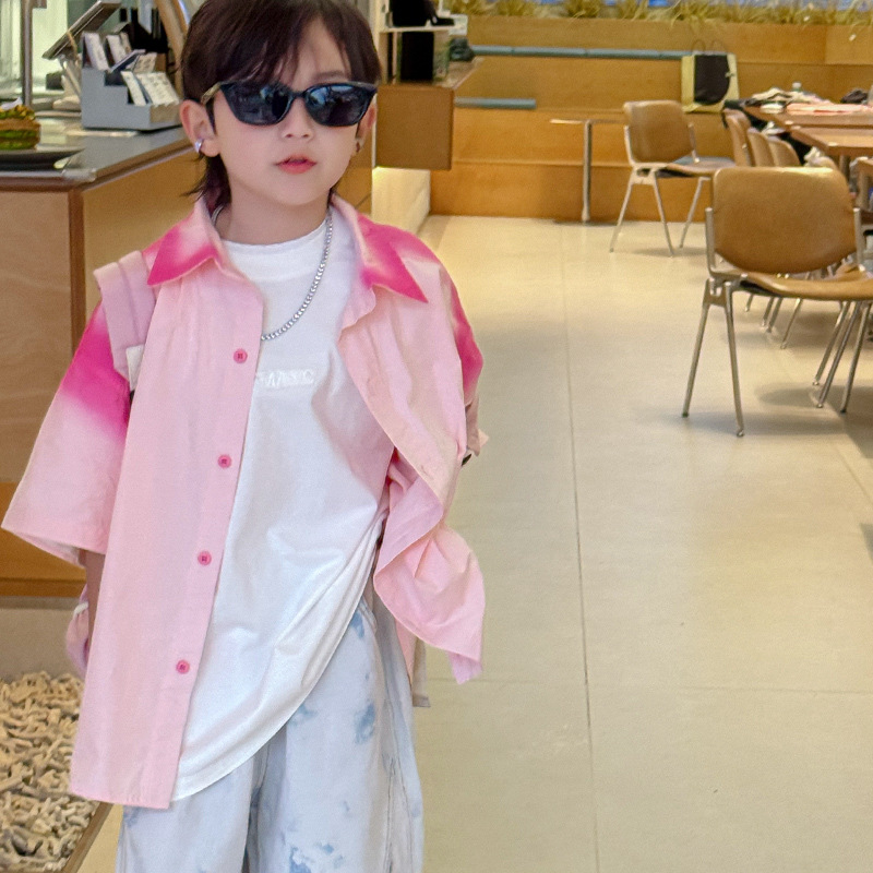 어린이 셔츠 여름 반팔 소년 자켓 2021 여름 어린이 의류 소년 최고 캐주얼 패셔블 타이 다이 셔츠