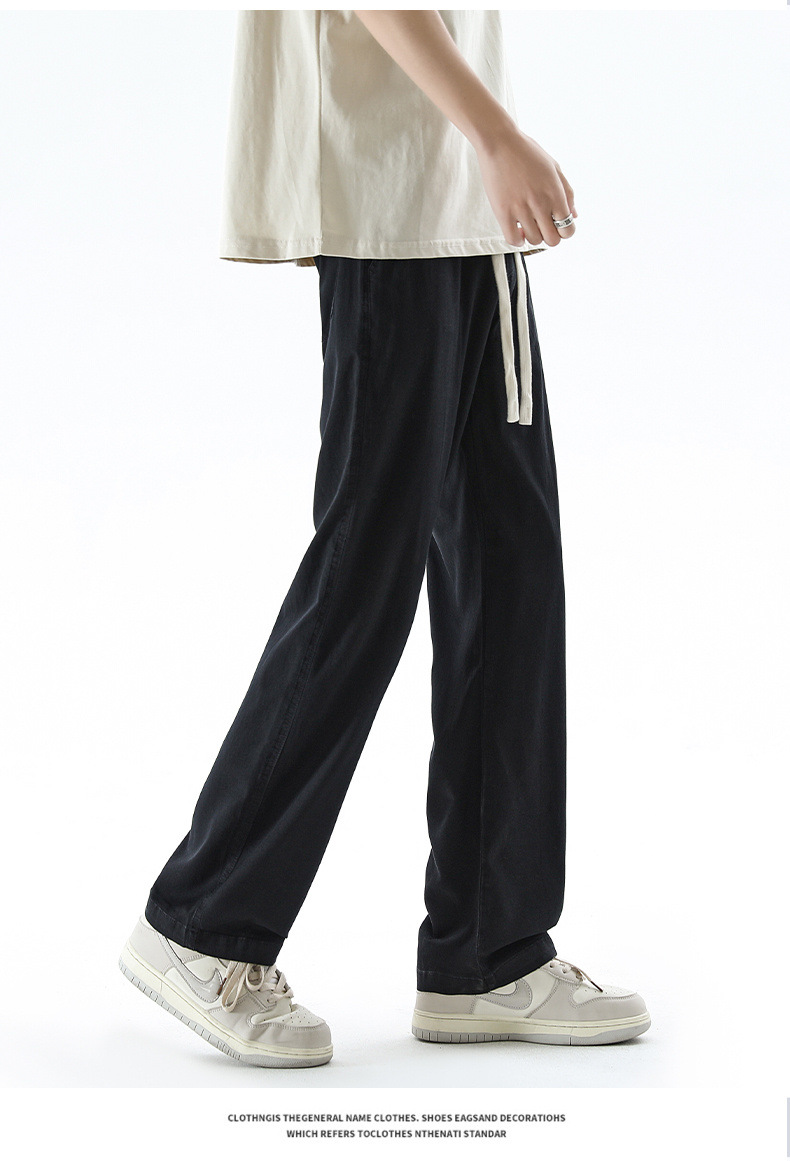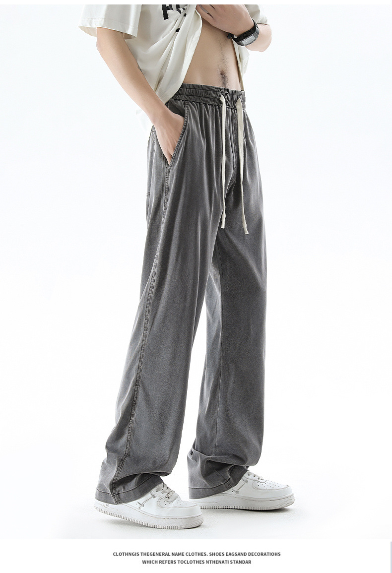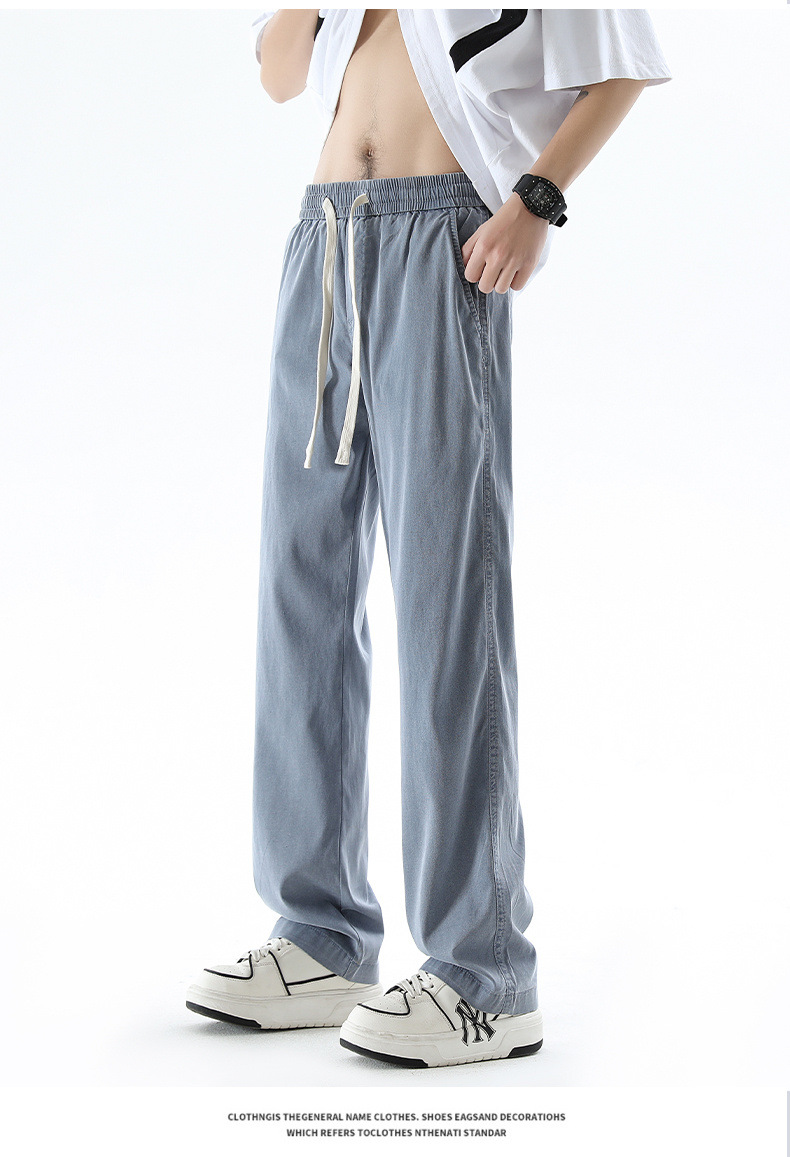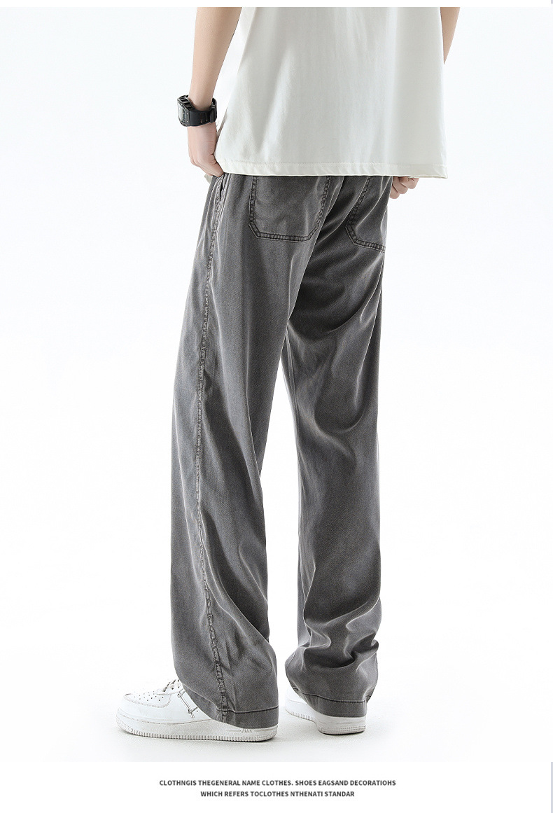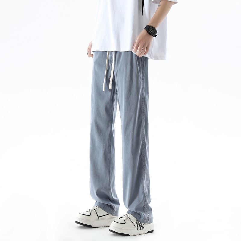 텐셀 청바지 남성 봄과 여름 느슨한 한국 스타일 트렌디 브랜드 남성 레트로 스트레이트 홍콩 스타일 아이스 실크 남성 캐주얼 바지스토어 가기