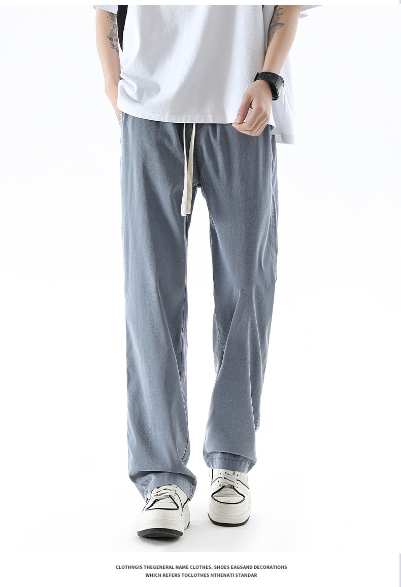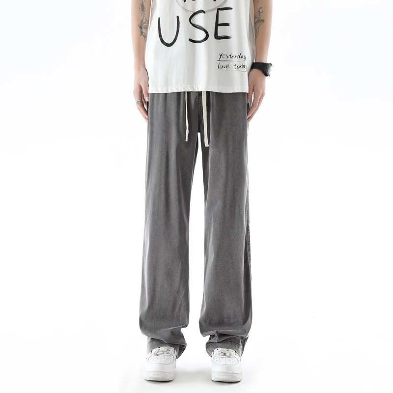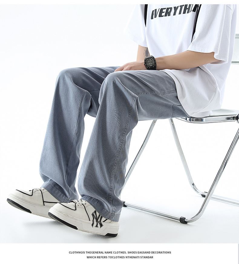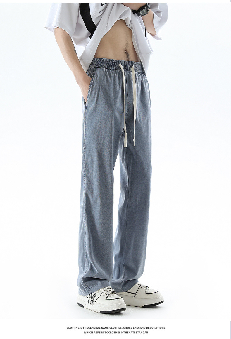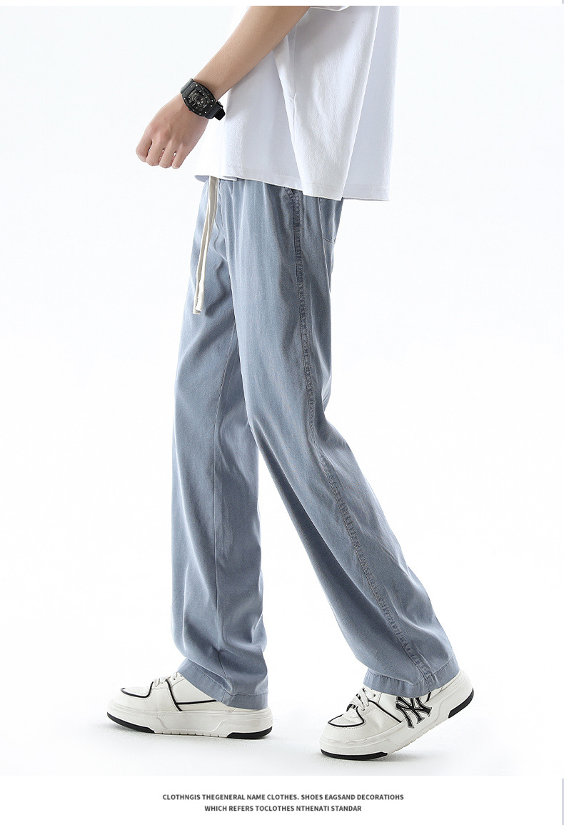 텐셀 청바지 남성 봄과 여름 느슨한 한국 스타일 트렌디 브랜드 남성 레트로 스트레이트 홍콩 스타일 아이스 실크 남성 캐주얼 바지스토어 가기